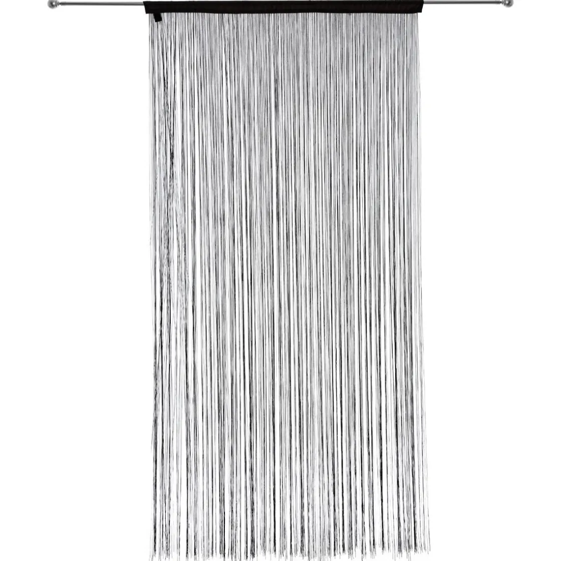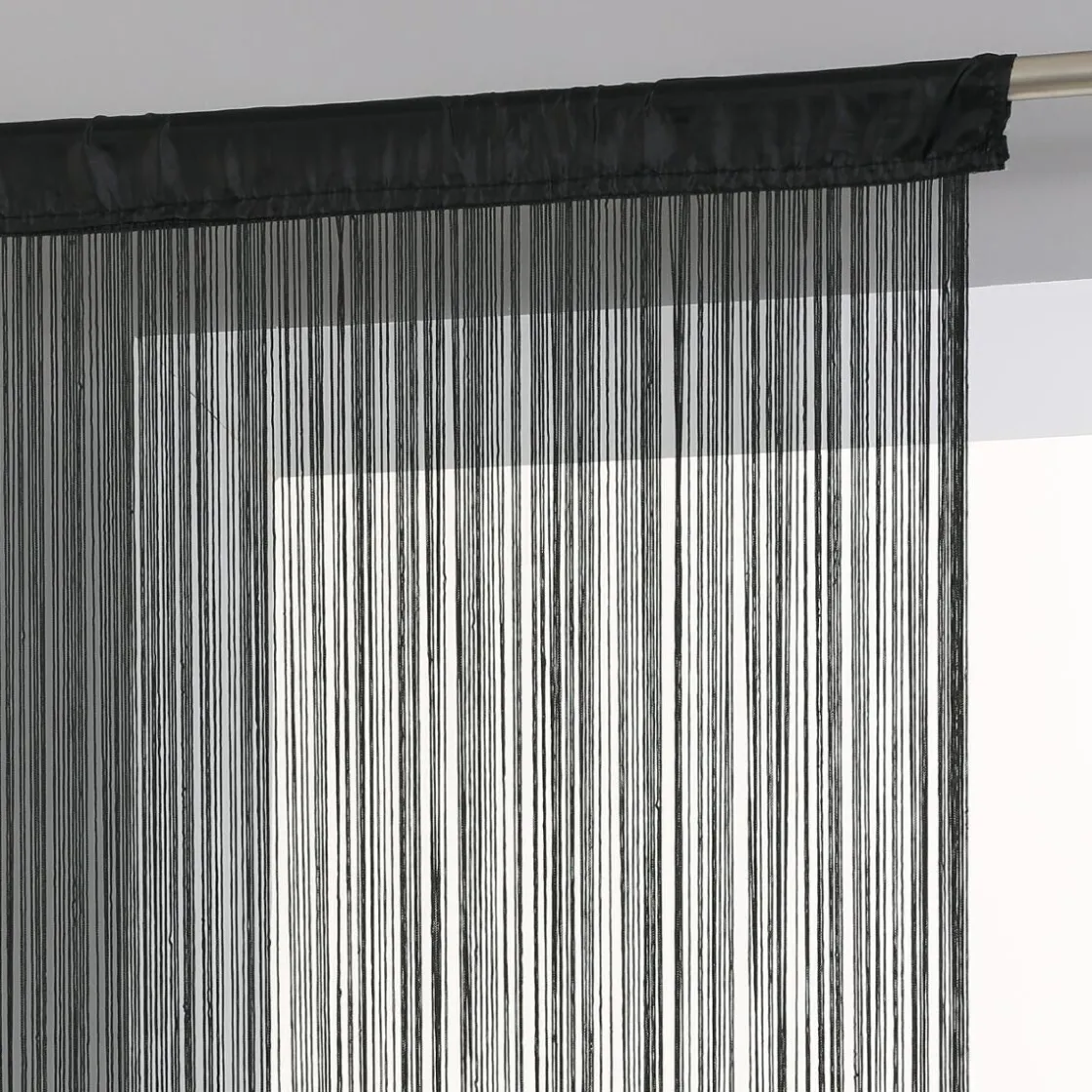 ce rideau à fils Noir mesure L. 90 x H. 200 cm pour 270 g.