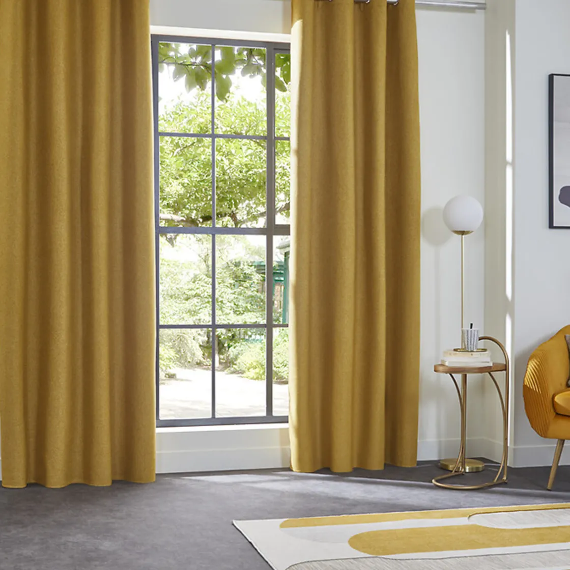 Réalisé dans un épais tissage, ce rideau occultant vous permettra de protéger une pièce de la lumière du jour. Doté d’oeillets métalliques permettant de le glisser facilement sur une tringle, il habillera une fenêtre de format standard et peut être lavé en machine.