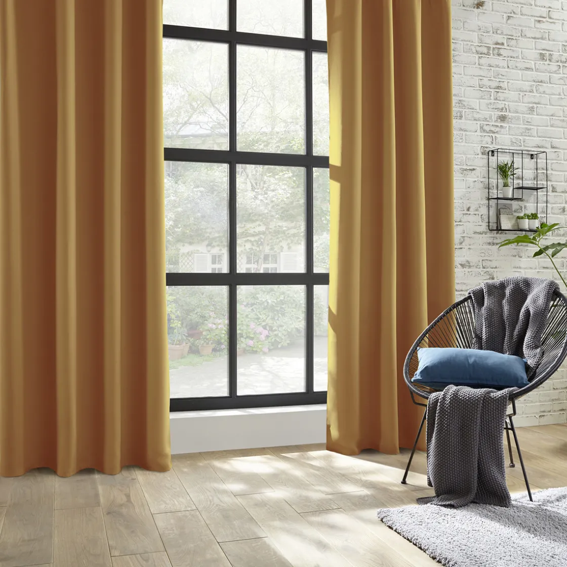 Ce rideau occultant vous permettra de plonger une pièce dans une ambiance chaleureuse tout en rehaussant votre déco d’une touche raffinée. Très facile à poser grâce à ses oeillets métalliques, il s’adaptera idéalement à une fenêtre de 140 x 260 cm. Réalisé en tissage de polyester, il est simple à entretenir et se lave en machine.