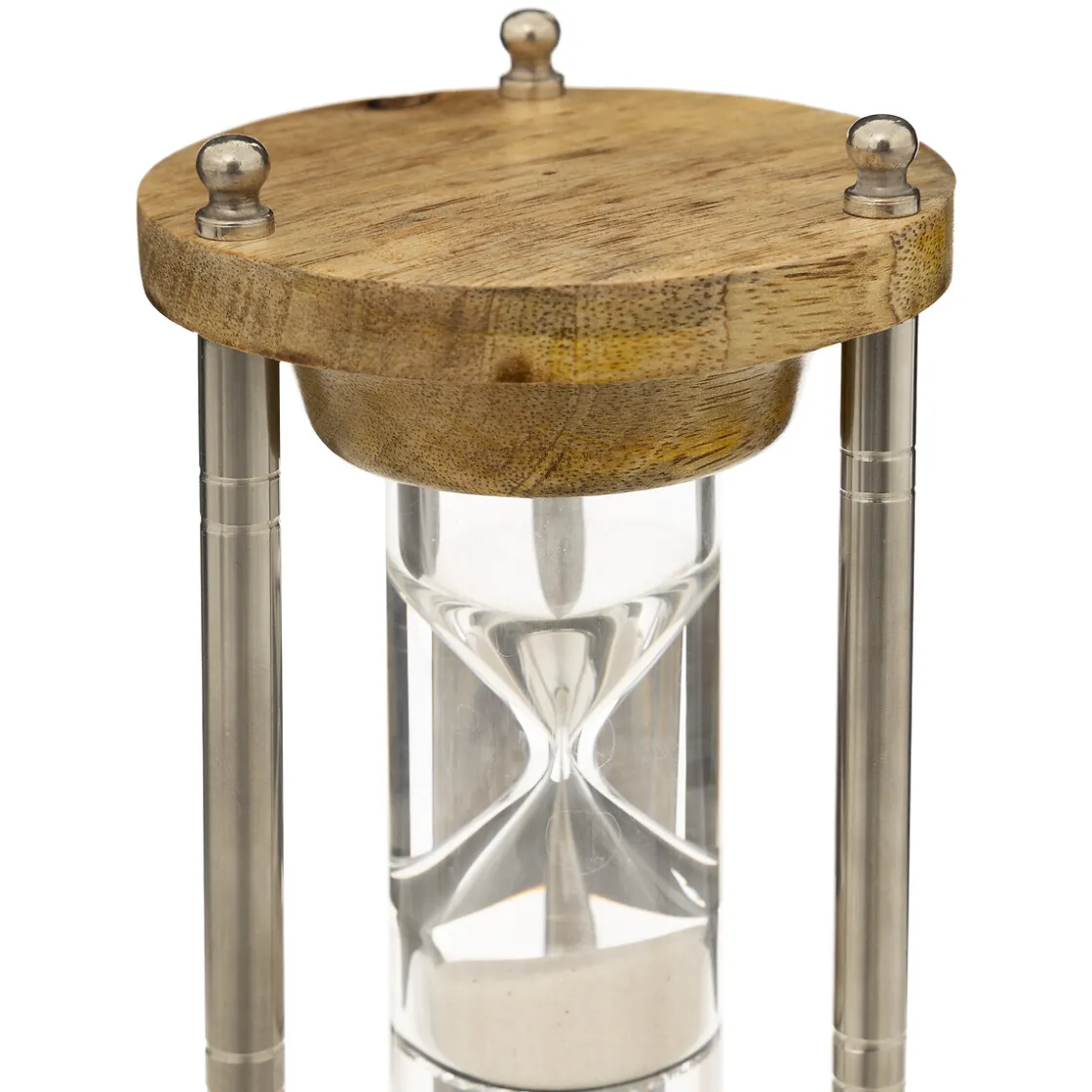 Le sablier « Rana » obéit à un grand format et se distingue par un mix de matières, le support en bois de manguier étant structuré par des tiges en métal. Idéal pour minuter vos plats en cuisine, il sera l’allié de vos parties de jeux de société en famille ou entre amis. Exposez votre sablier sur une table basse comme sur une console!