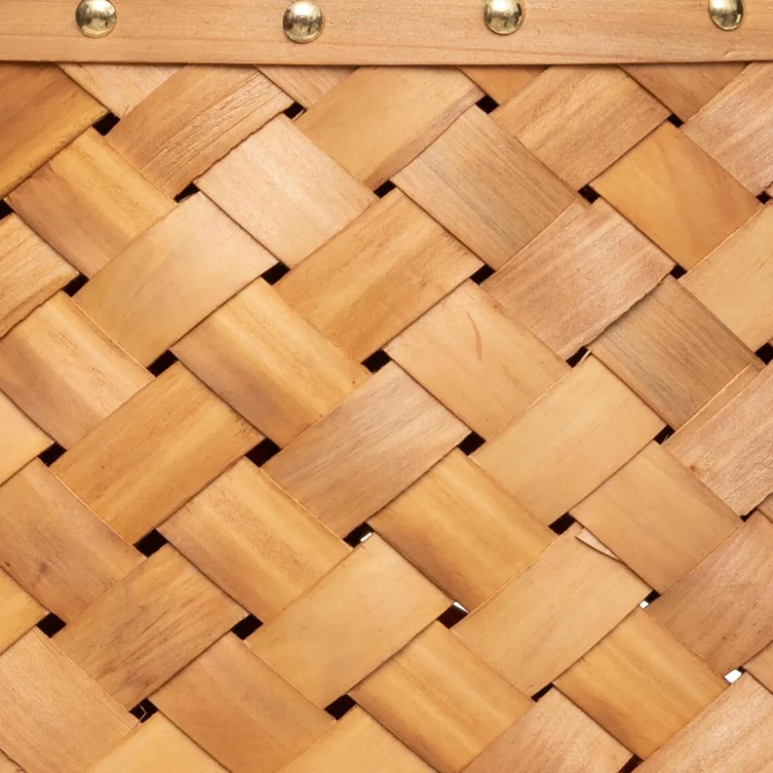 Ces paniers de tailles différentes présentent un tressage en sapin légèrement ajouré. Ils sont tous deux munis d’un couvercle avec une poignée. Côté finitions, des petits clous de tapissier évoquent le savoir-faire artisanal.