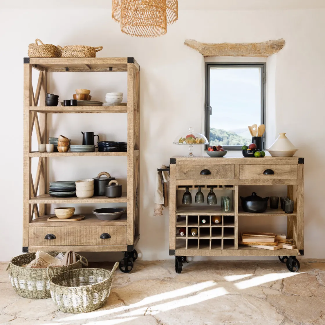 Vous pourrez dépareiller vos paniers ou les exposer ensemble sur un tapis comme sur un meuble en bois. Placez des coussins ou du linge dans le plus grand et utilisez le second pour des accessoires déco.