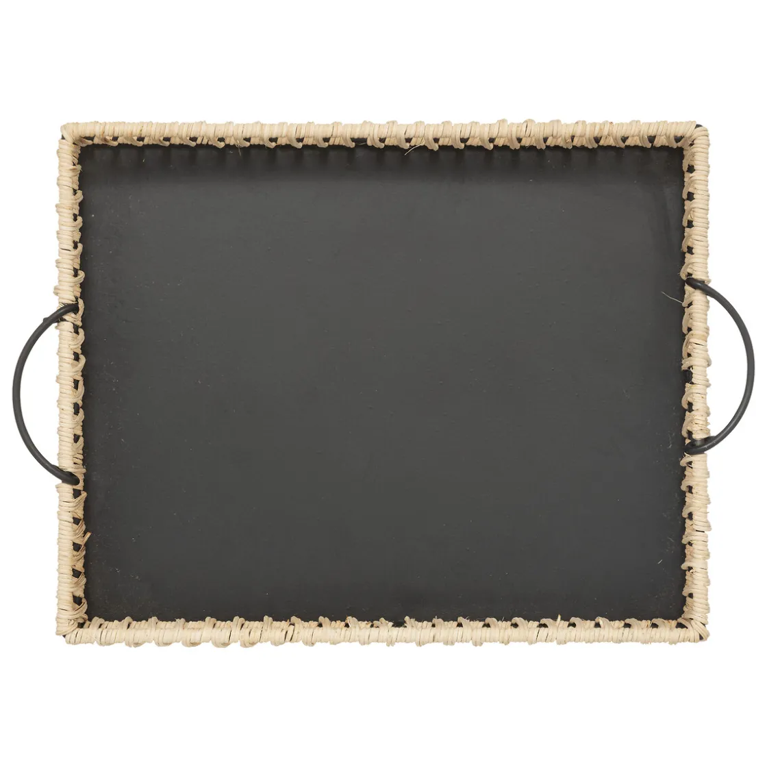 Le set de plateaux « Cosy » est composé de 2 plateaux rectangulaires de tailles complémentaires. Réalisés en métal et dotés de poignées, leurs montants sont tressés de rotin. Sur une table basse comme sur une table à manger, ils seront aussi pratiques que décoratifs.