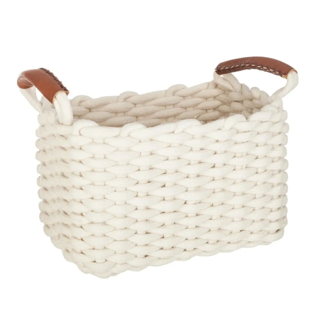 Ces accessoires rectangulaires empruntent aux paniers artisanaux leur charme tout en y apportant une touche contemporaine. Ils sont parfaits pour ranger les affaires de toilette de bébé, les produits de beauté, les petites serviettes…