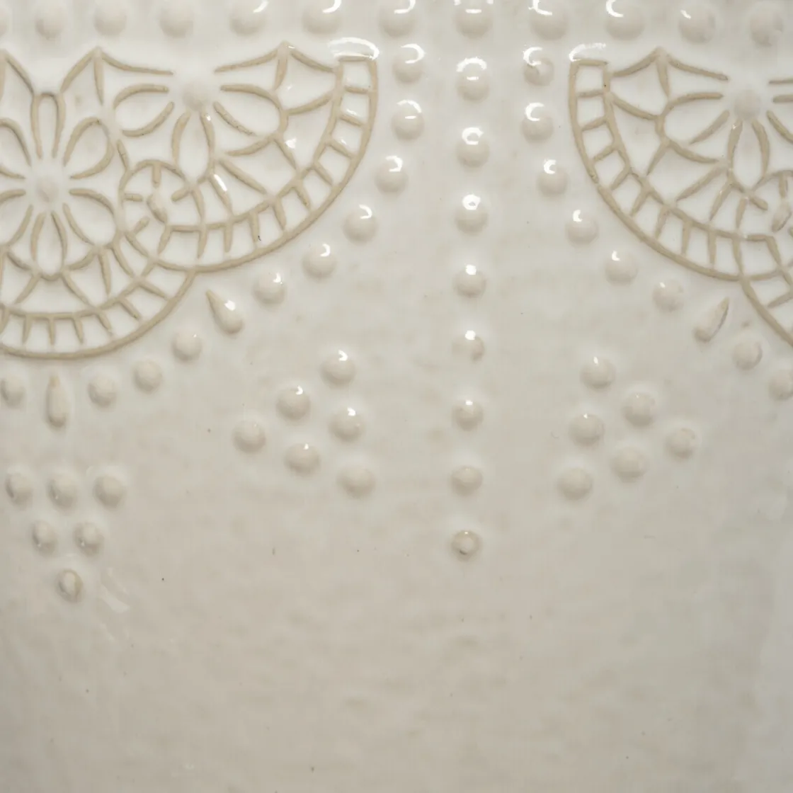 Cet ensemble est composé de trois pots de tailles différentes, confectionnés en céramique. Ils sont joliment décorés de délicats motifs en relief. La couleur naturelle subtile des cache-pots embellira vos arrangements floraux et vos végétaux.