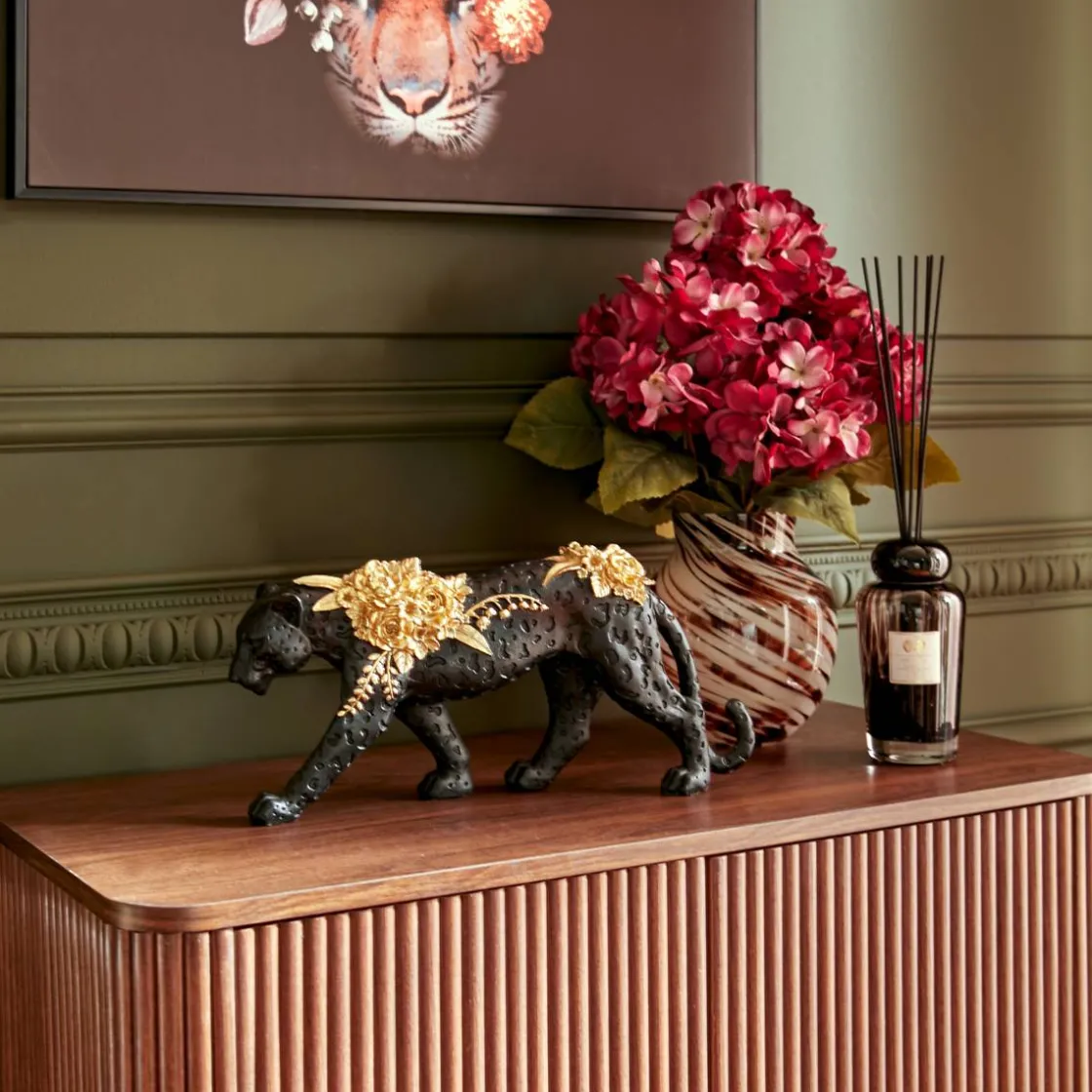 De format moyen, cette jolie statuette est en forme de panthère agrémentée de fleurs en relief. Elle est composée de résine avec des éléments dorés qui contrastent à merveille. Dans votre séjour, votre chambre ou une entrée, posez votre animal déco Belli sur une console Atmosphera.