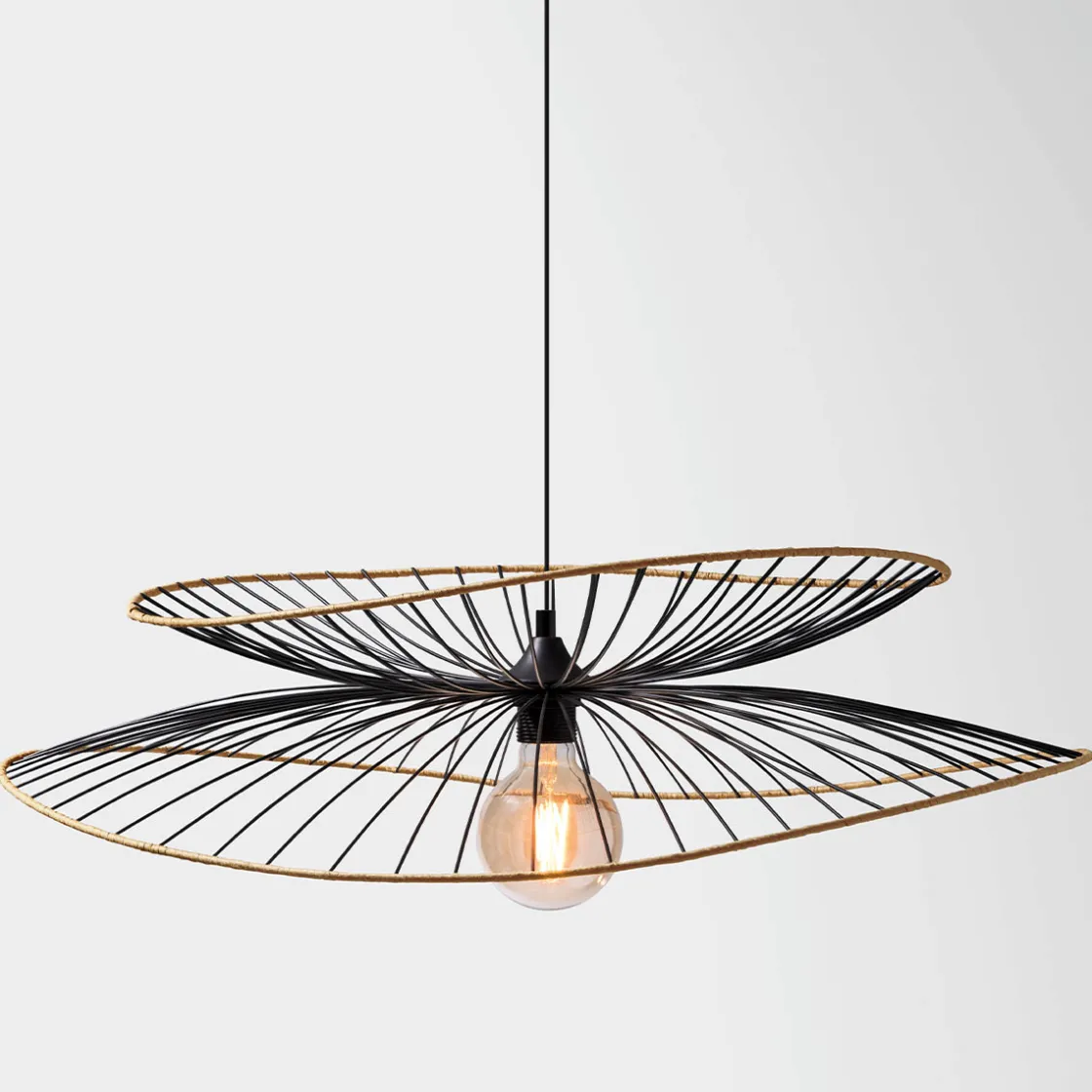 Le luminaire bimatière « Alara » se présente sous forme d’un double abat-jour en fer. Les contours sont recouverts de papier effet bois pour apporter de la chaleur au modèle. Grâce à son câble, vous pourrez ajuster la hauteur de votre lampe de plafond à votre convenance.