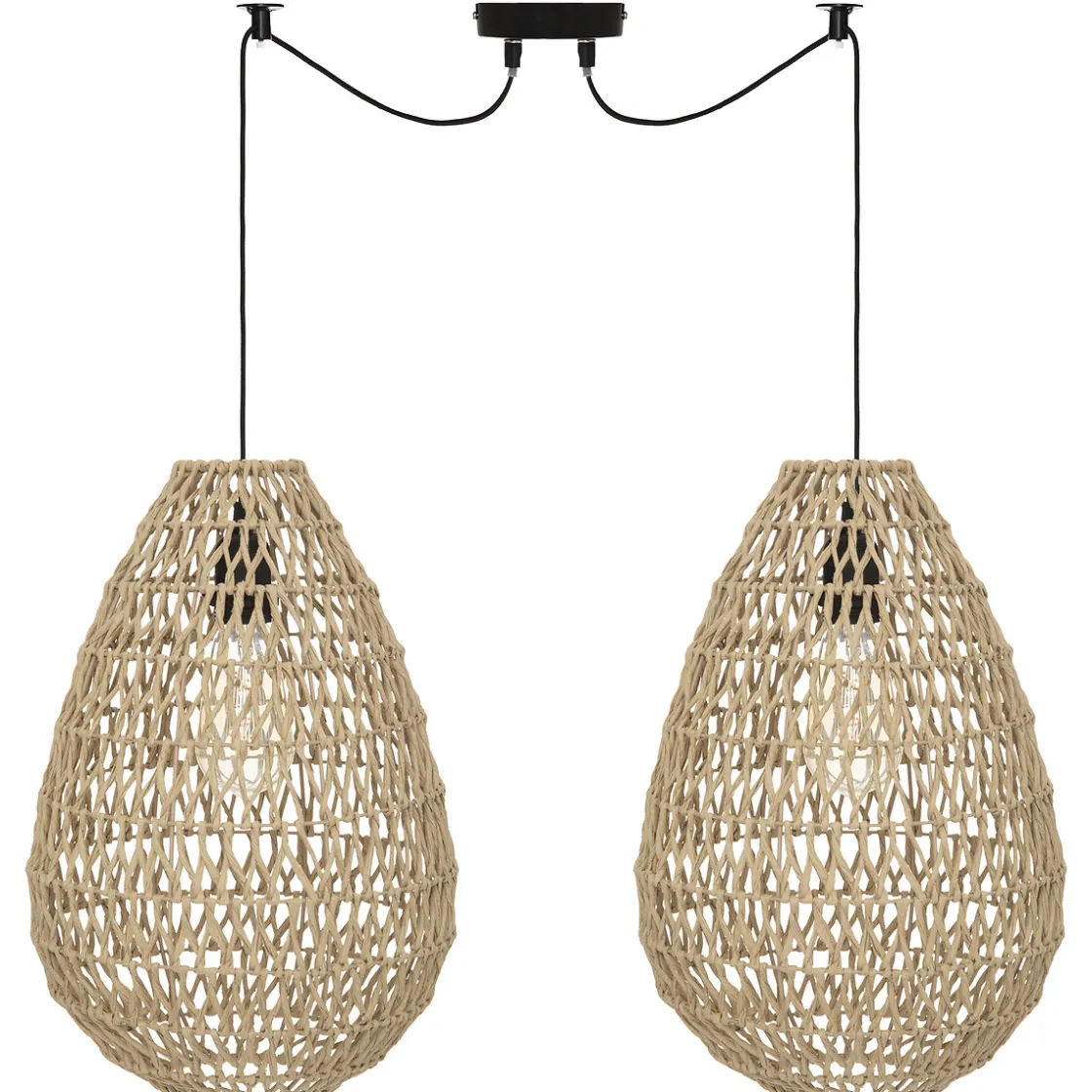Avec une apparence artisanale, la suspension « Etel » se caractérise par le maillage en papier torsadé de ces deux abat-jours. Elle évoque tout de suite des contrées éloignées avec son allure naturelle et aérienne.