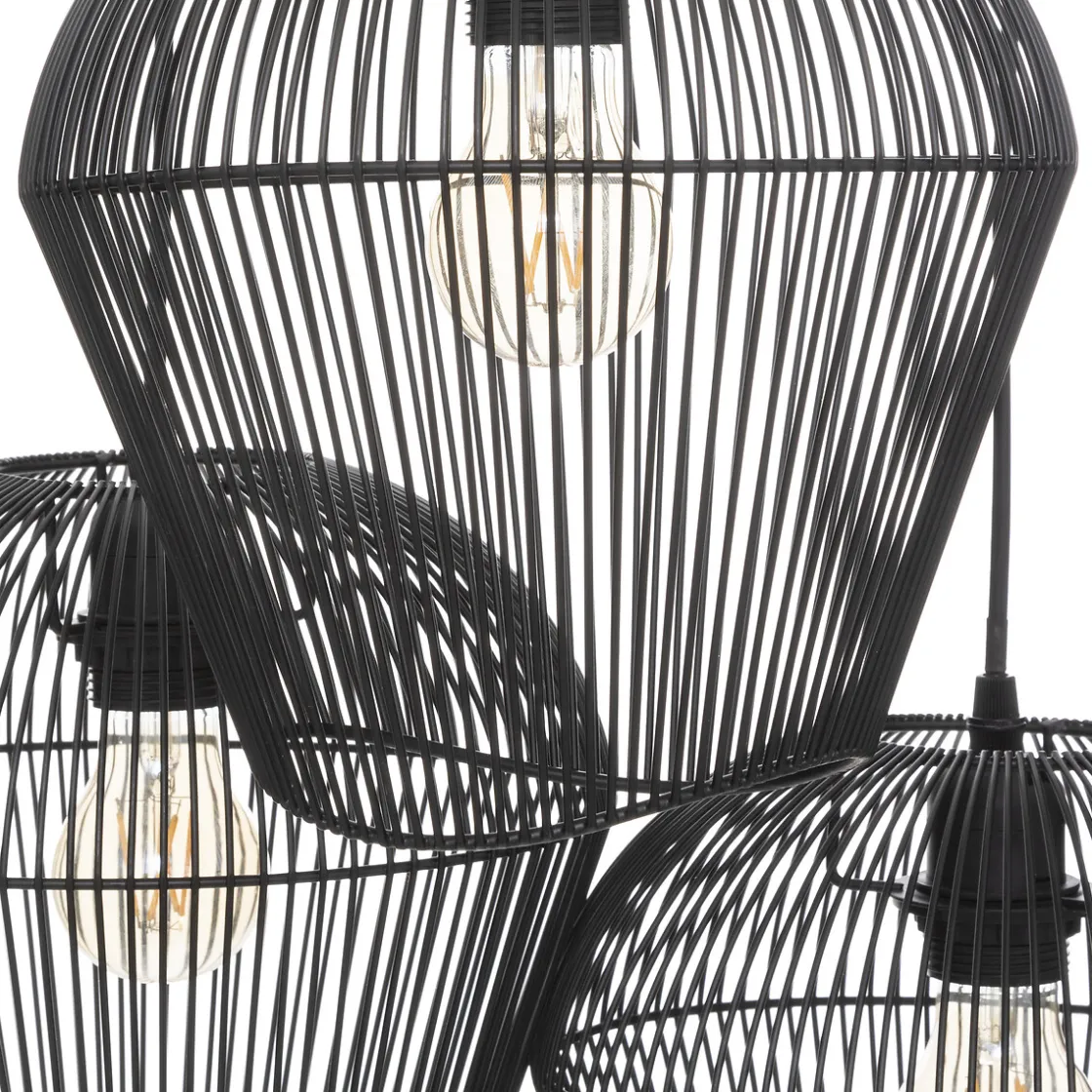 La suspension « Jena » est composée de trois abat-jours en métal filaire. Placés à différentes hauteurs, ils offrent un rendu asymétrique et moderne. Avec des ampoules dans les tons chauds, ce luminaire procurera un éclairage chaleureux dans votre intérieur.