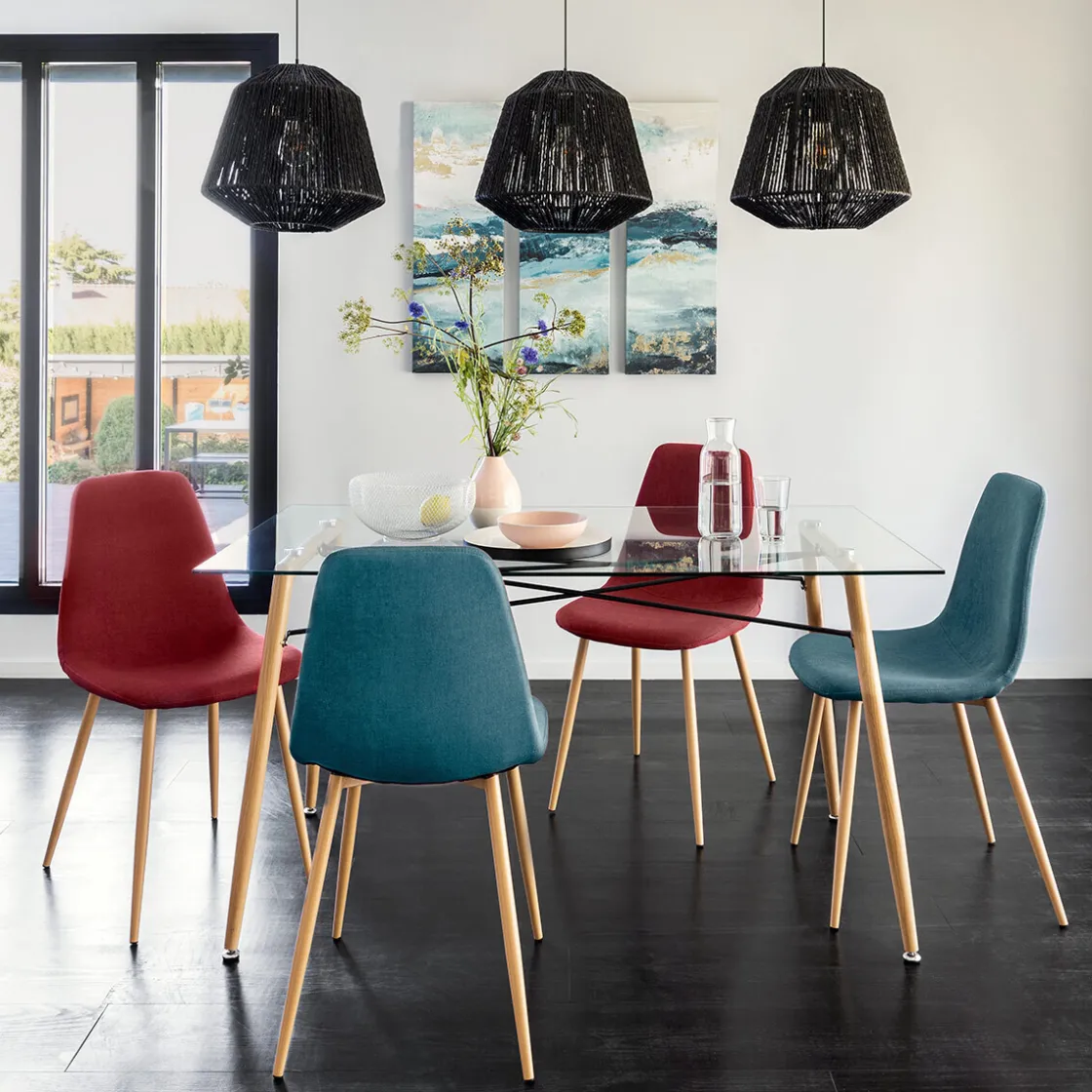 Cette suspension originale sera à sa place au-dessus d’une table basse. Associez des lustres de formes différentes pour un effet d’accumulation tendance.