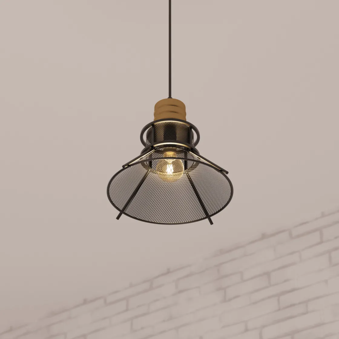 L’alliance du grillage en métal d’inspiration industrielle et la base dorée ajoute une touche de contraste très chic. La maille fine préserve la luminosité de l’ampoule choisie mais adoucit légèrement son éclat pour créer une ambiance plus intime.
