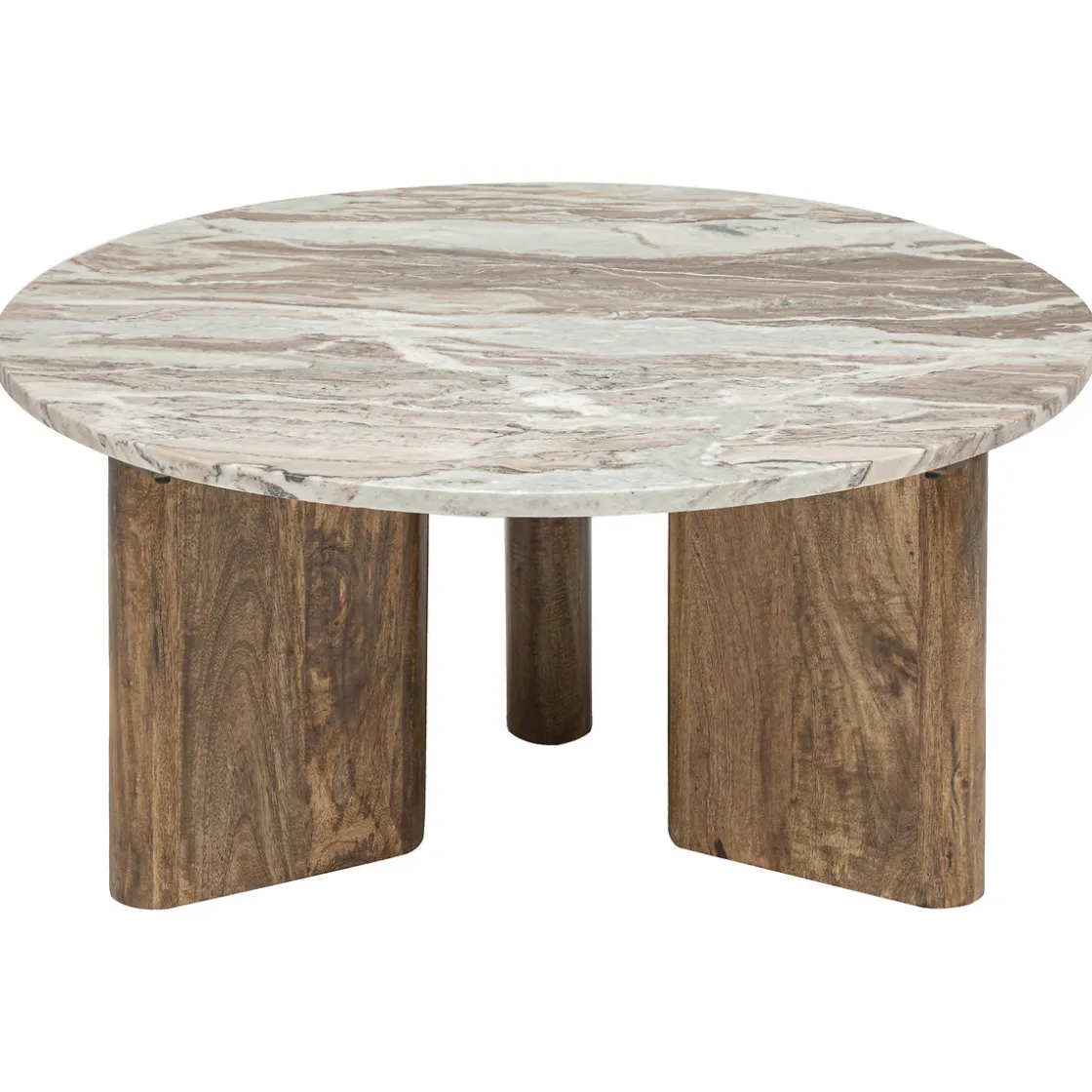 Avec son plateau en marbre et ses pieds en bois de manguier, cette table basse ronde mélange les matériaux avec audace. Elle apportera tout de suite une touche raffinée à votre décoration.