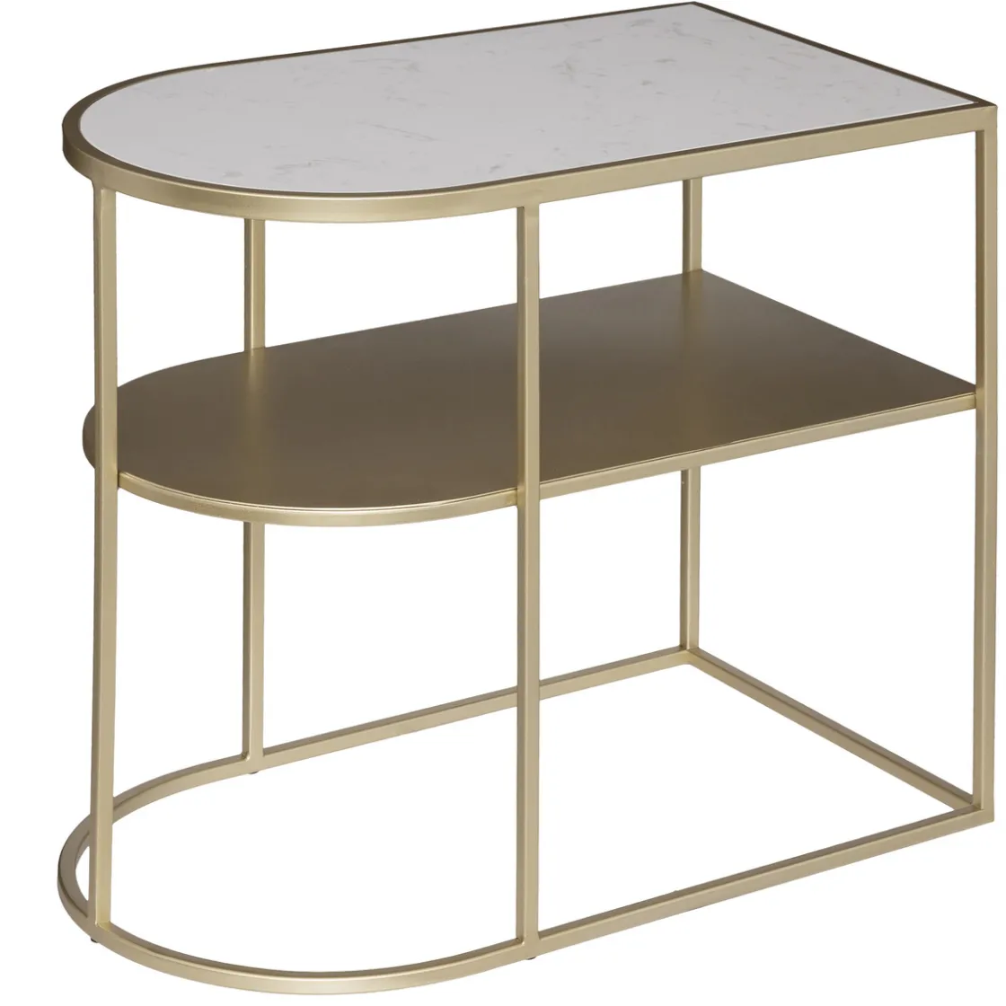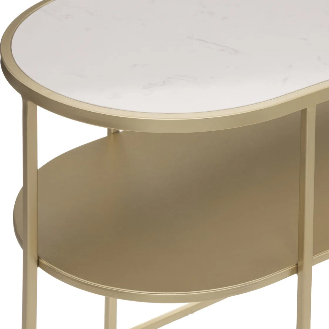 Cette table d’appoint se distingue par une forme ovale et une structure en métal brillant. Très pratique, elle possède deux plateaux spacieux. Le marbre du plateau supérieur donne beaucoup d’élégance à l’ensemble.