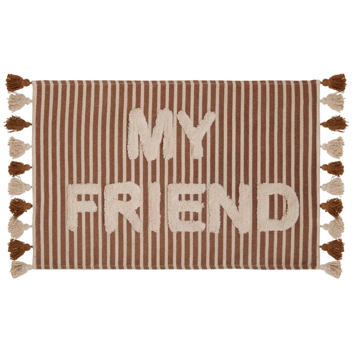 Rectangulaire, le tapis Scott Atmosphera for kids obéit à des dimensions qui s’adapteront parfaitement à une chambre d’enfant. Placé en descente de lit comme dans un coin jeu, ce tapis épais est équipé d’un envers antidérapant pour lui éviter de glisser. Orné de franges aux extrémités, il est brodé d’un message tendre en relief, réalisé en tissu bouclette. Ce tapis en tissage de coton est à la fois facile à vivre et empreint de douceur.