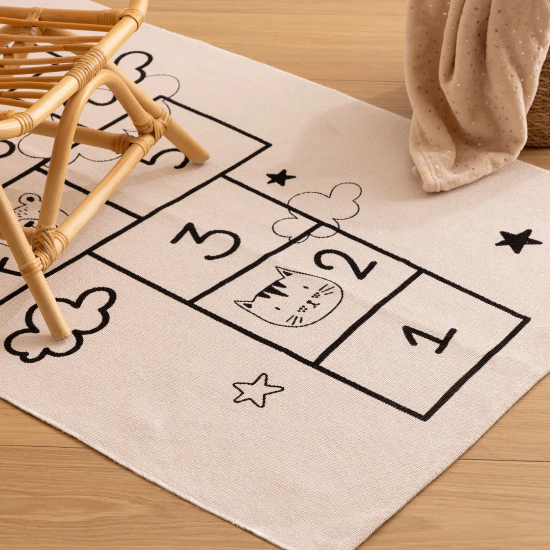 Orné d’un motif de marelle grandeur nature, le tapis « Marelle » permettra à votre bambin de s’initier à ce jeu d’adresse ancestral. Plus besoin de craie, il aura accès à son jeu préféré toute la journée! De plus, il dispose d’un revêtement anti-glisse à l’arrière du tapis