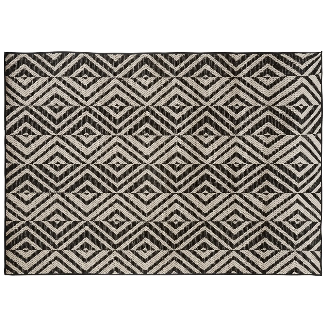 Très pratique, ce tapis rectangulaire est conçu pour un usage à l’extérieur ou à l’intérieur. Cet accessoire possède des motifs géométriques avec des couleurs contrastantes. Son allure artisanale conviendra parfaitement à une décoration ethnique chic.