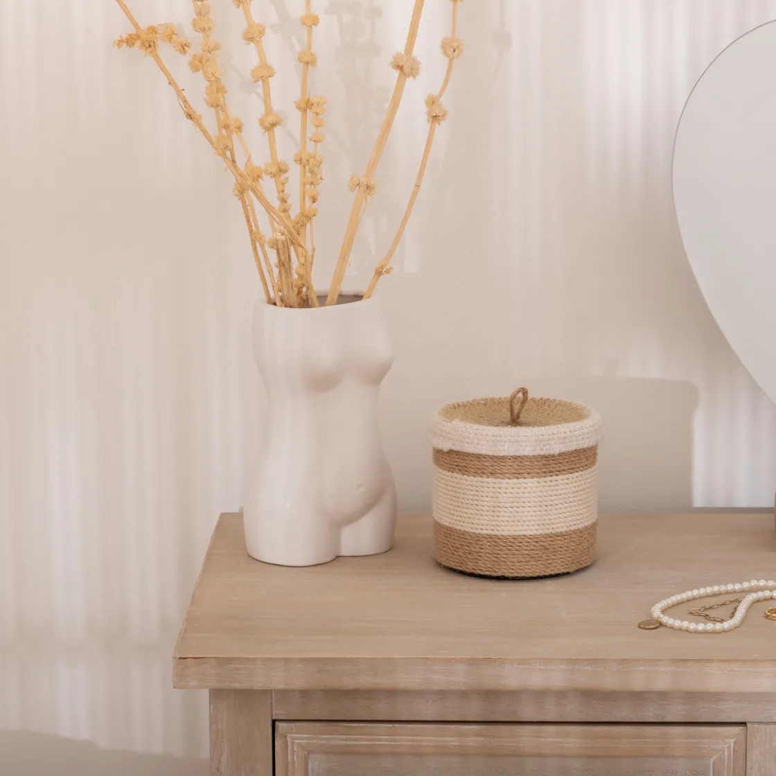 Installez votre vase corps « Soleya » sur une table basse en bois clair Atmospherapour le mettre en valeur.