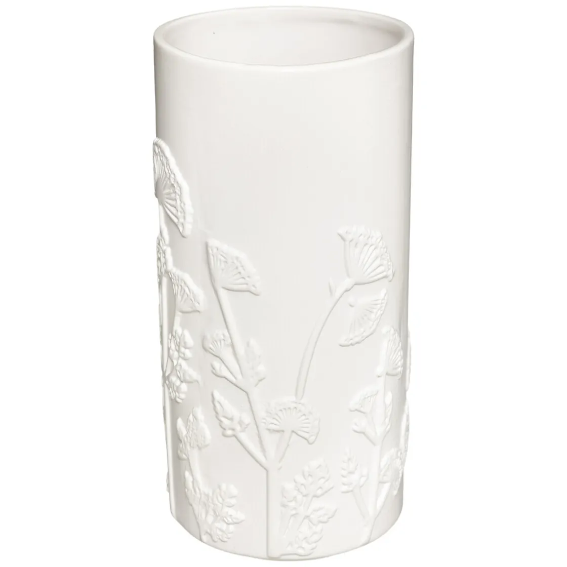 Ce vase cylindrique en céramique a un design simple et épuré. Il est orné de motifs floraux en relief et possède une couleur neutre. Posé sur un meuble, la sobriété du vase « Mind » mettra parfaitement en valeur vos compositions florales.