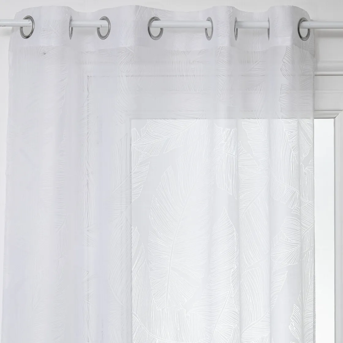 Le voilage « Devo » se caractérise par ses grands motifs en forme de feuilles qui décoreront à merveille une pièce à vivre. En plus de laisser passer la lumière, il vous protègera des regards extérieurs. Les oeillets en métal sont très pratiques pour l’installer rapidement sur une tringle à rideaux.