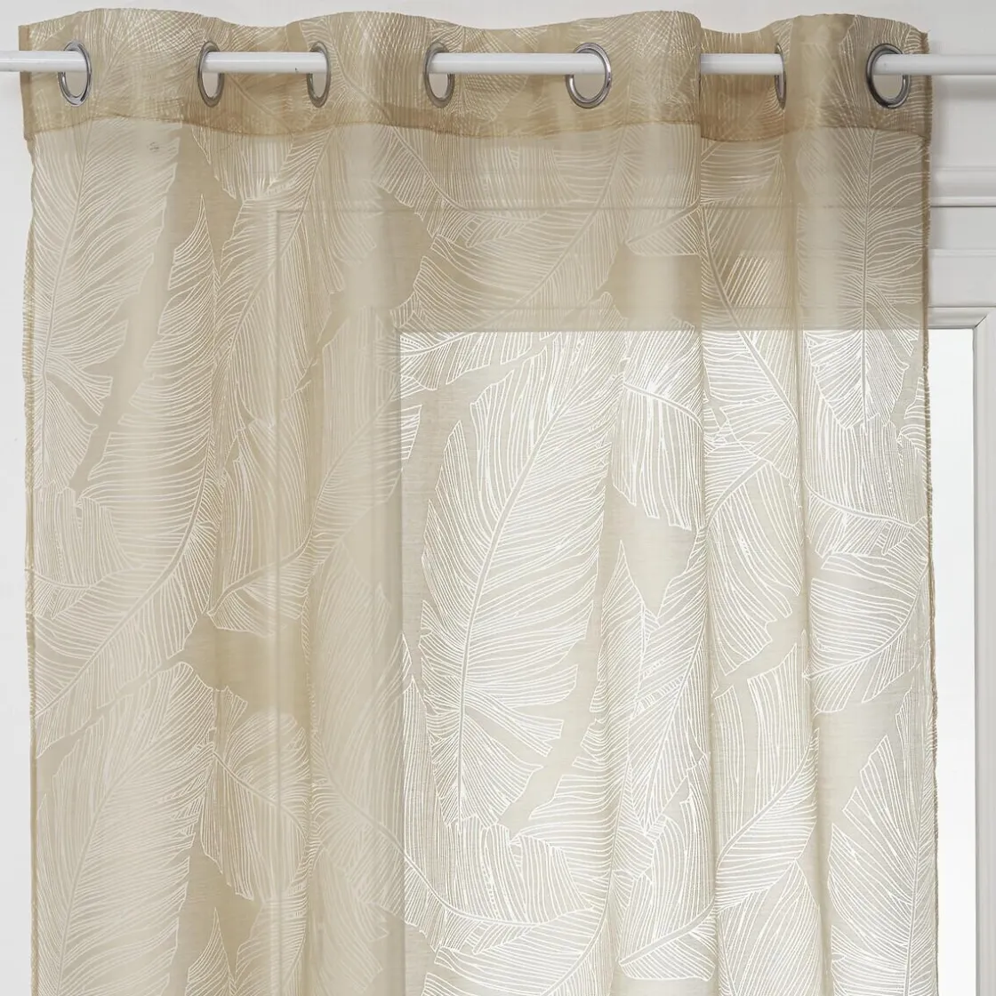 Le voilage « Devo » se caractérise par ses grands motifs en forme de feuilles qui décoreront à merveille une pièce à vivre. En plus de laisser passer la lumière, il vous protègera des regards extérieurs. Les oeillets en métal sont très pratiques pour l’installer rapidement sur une tringle à rideaux.