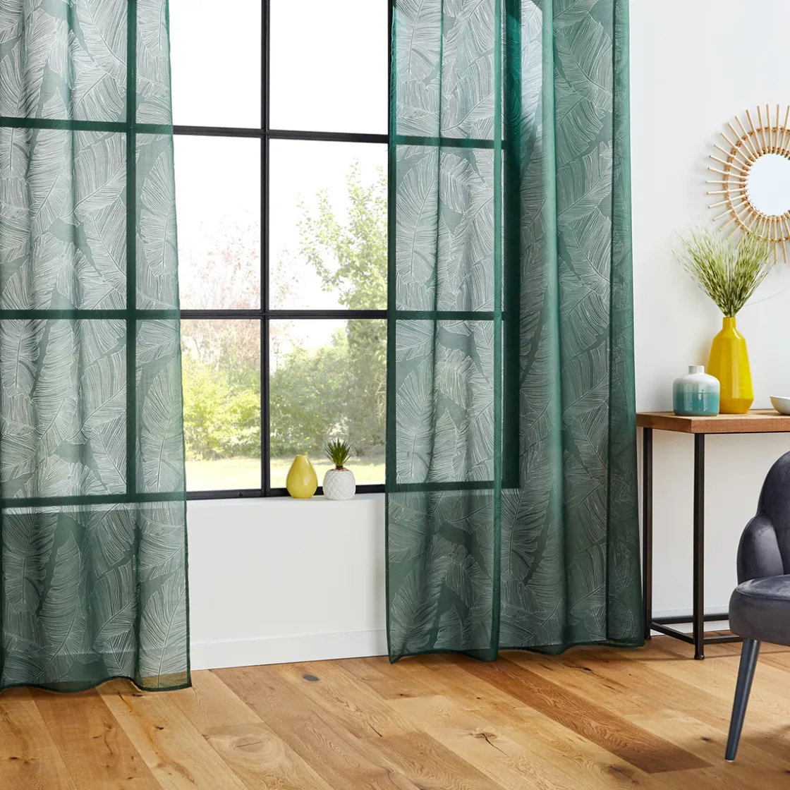 Le voilage « Devo » se caractérise par ses grands motifs en forme de feuilles qui décoreront à merveille une pièce à vivre. En plus de laisser passer la lumière, il vous protègera des regards extérieurs. Les oeillets en métal sont très pratiques pour l’installer rapidement sur une tringle à rideaux.