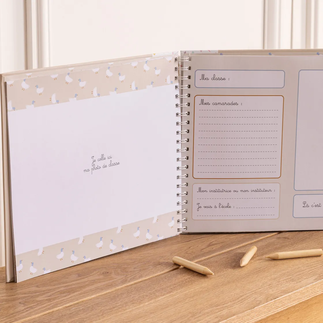 Dans cet album au format paysage, il vous suffira de coller la photo de classe sur la page de gauche. Tandis que la page de droite vous permettra d’inscrire l’école, la classe, l’âge de votre enfant, l’année scolaire, le nom de ses camarades et son instituteur/rice.