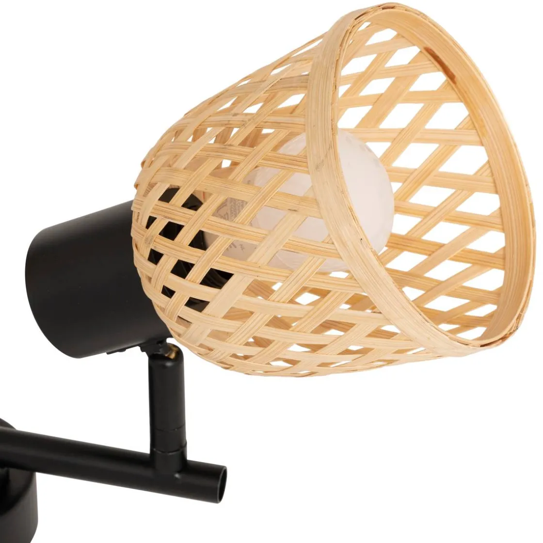 L’applique bois Lio 2 spots Atmosphera peut être utilisée en tant que plafonnier ou fixée au mur. Sa base cylindrique en acier teinté est équipée d’une barre transversale sur laquelle s’articulent 2 spots orientables. Dotés d’abat-jours en tressage de bambou naturel certifié FSC®*, ces spots produiront un jeu de lumière agréable dans une pièce, une fois équipés des ampoules de votre choix. Dans une entrée, une chambre ou une pièce de vie, vous pourrez orienter ces spots en fonction de vos besoins et les associer à du mobilier en bois ou en métal pour harmoniser votre déco.