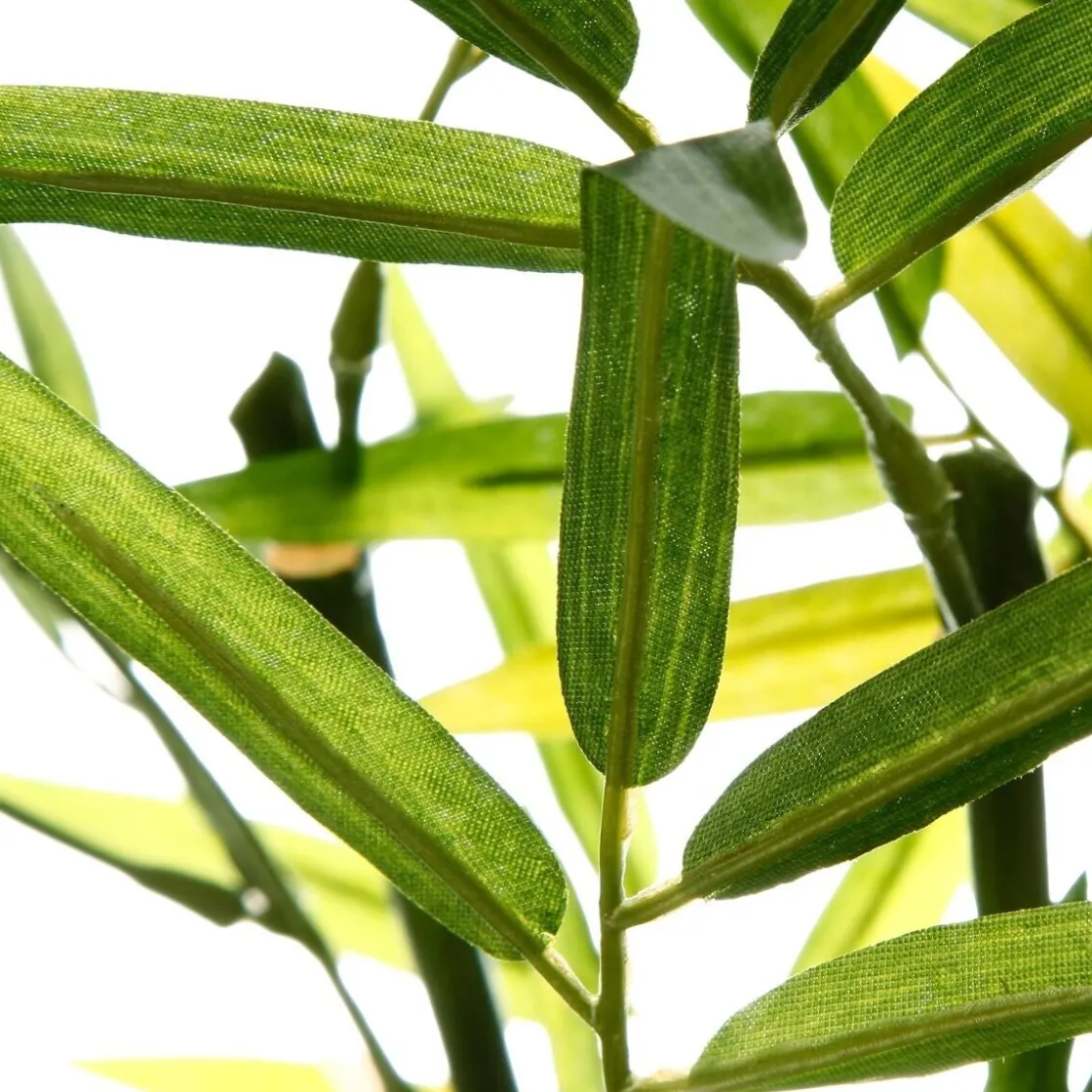 Ce bambou artificiel se distingue par son pot en argile texturé, à la forme carrée et aux arrêtes arrondies. Avec des dimensions harmonieuses de 36 x 37 cm, il trouvera sa place dans les petits espaces et son feuillage déposera une note très naturelle. Idéal pour vous évader dans votre salon!