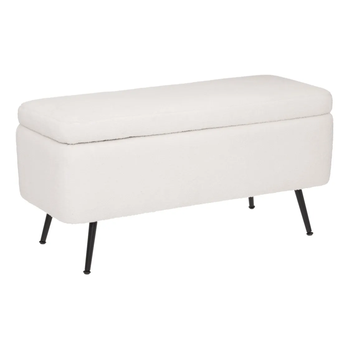 Le banc coffre « Aurora » est fabriqué dans une matière douce au toucher et repose sur des pieds fins en métal. Très astucieux, le haut se soulève pour dévoiler un coffre de rangement. Vous pourrez y stocker discrètement des plaids et autres coussins.