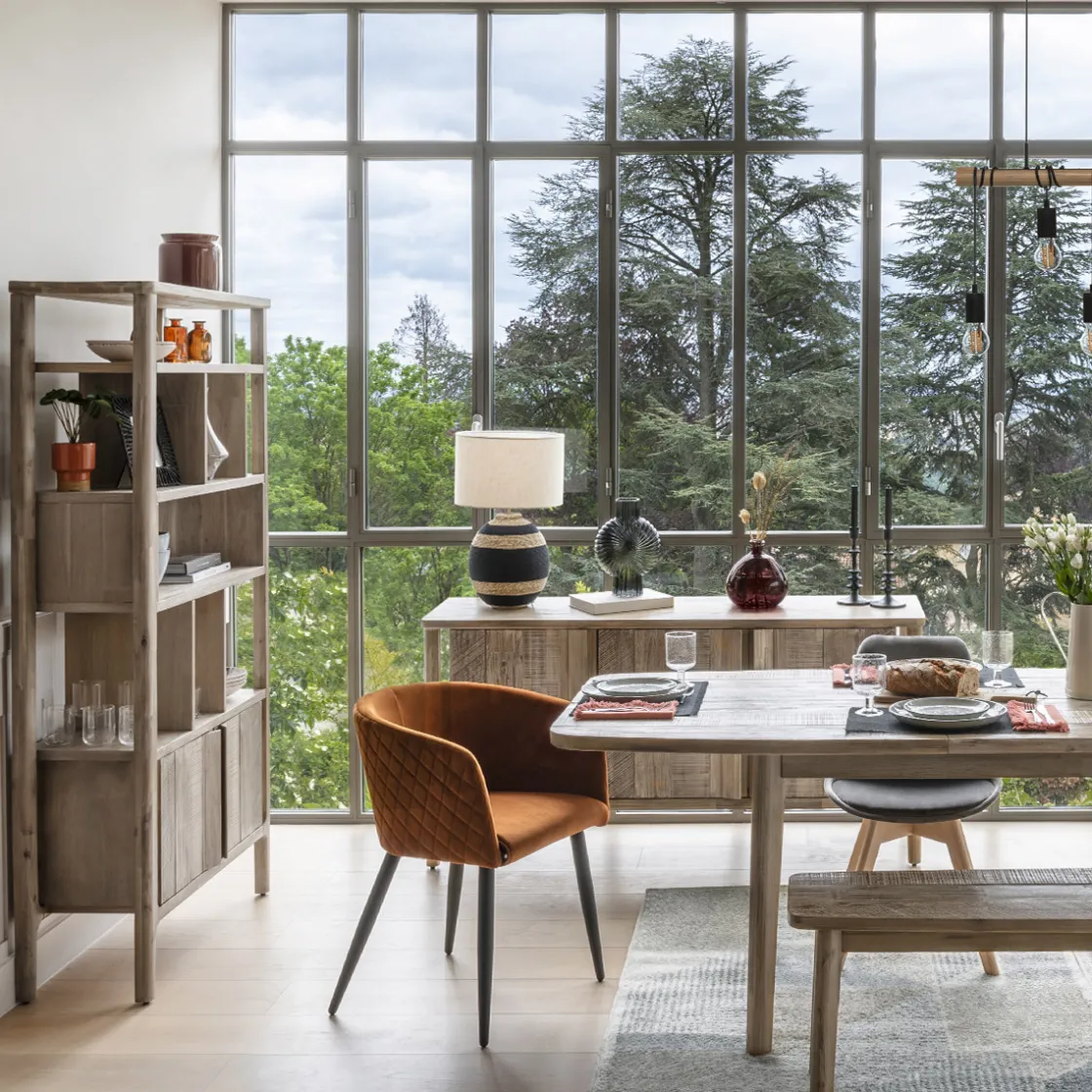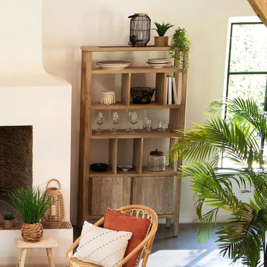 La structure robuste et la teinte naturelle de la bibliothèque « Banila » évoquent les meubles de campagne raffinés. Elle est réalisée en bois d’acacia dans un esprit artisanal.