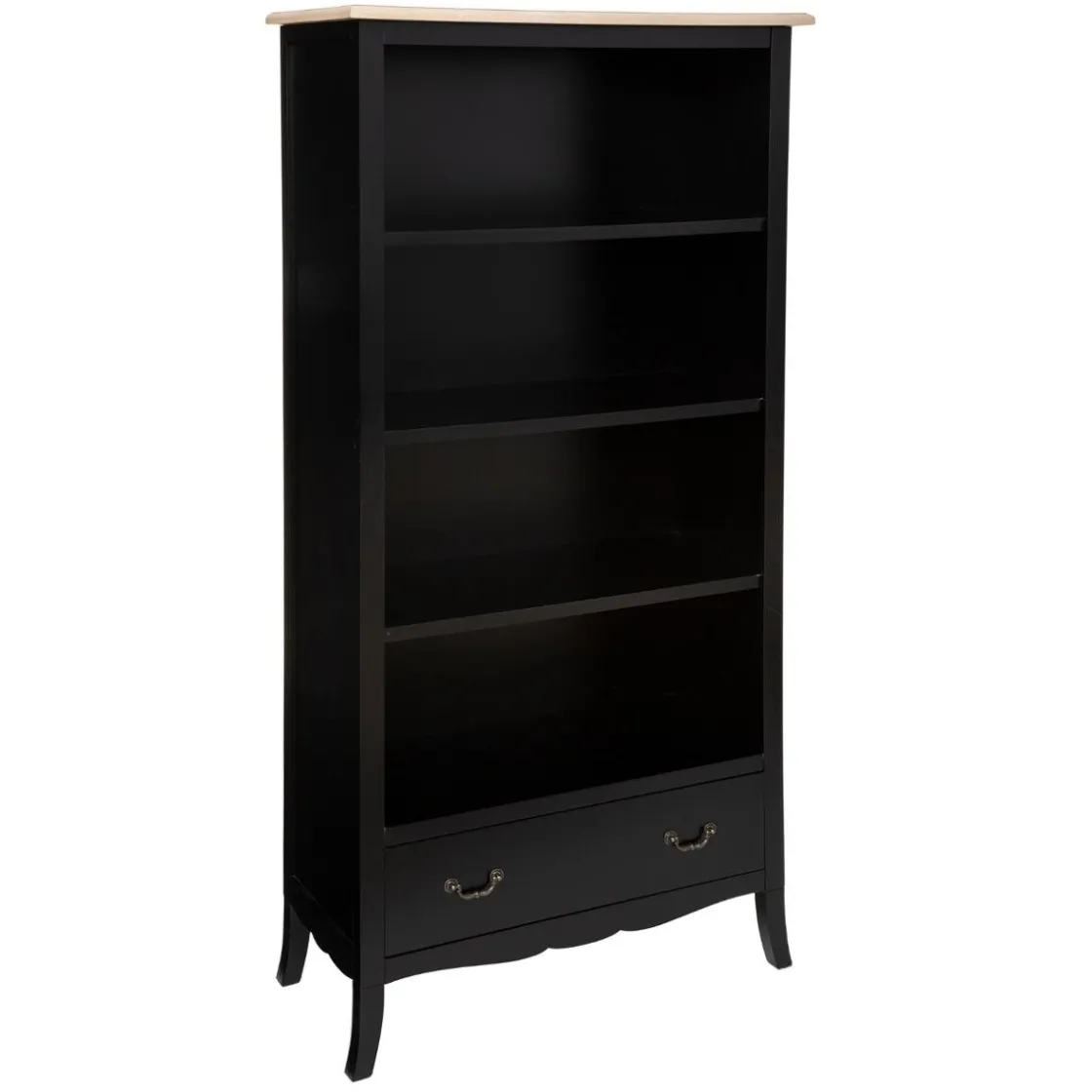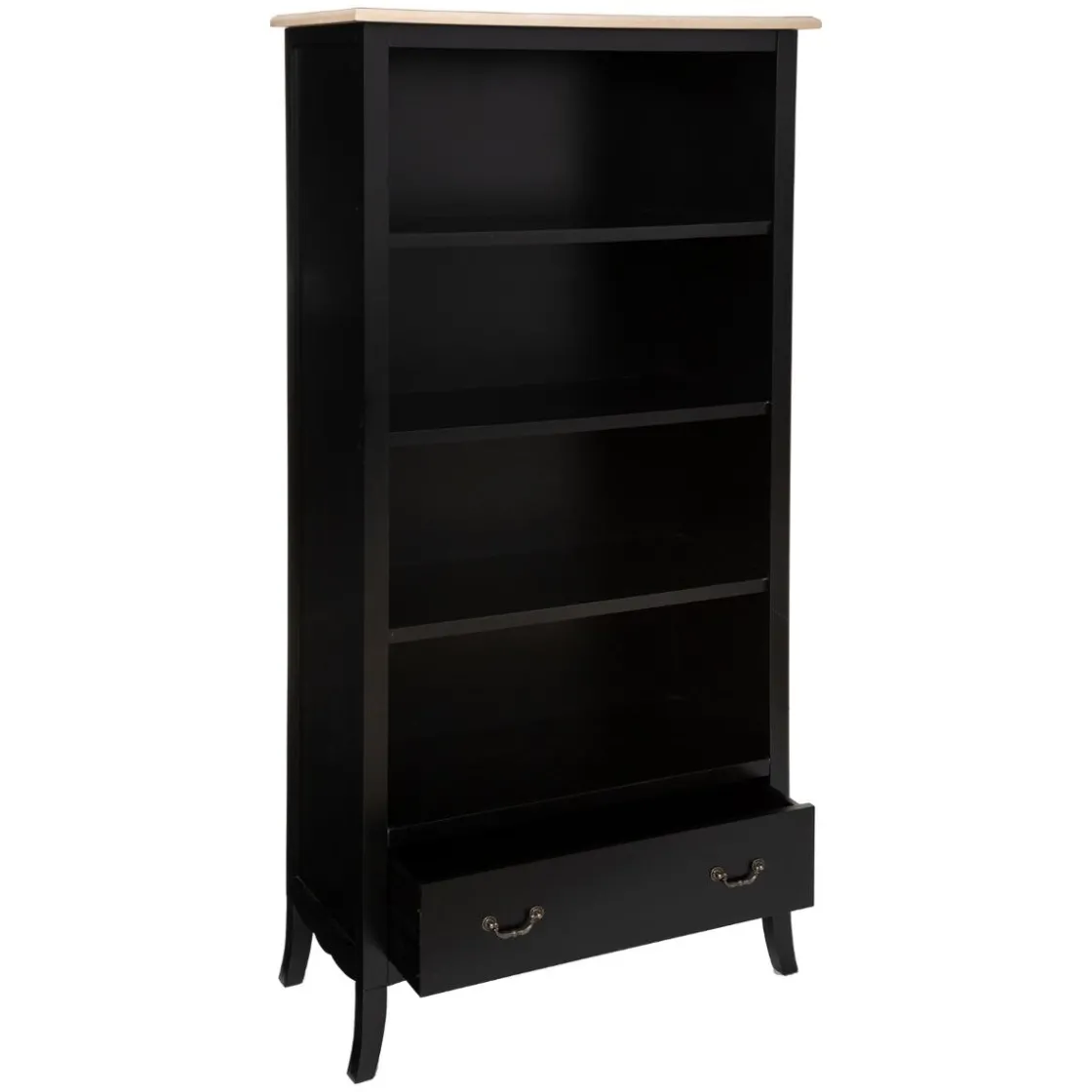Le plateau en bois apporte de la chaleur à la structure noire pour un rendu plein d’authenticité. Sublimant un meuble rétro, la silhouette délicate de la bibliothèque « Chrysa » lui confère une jolie touche de romantisme.
