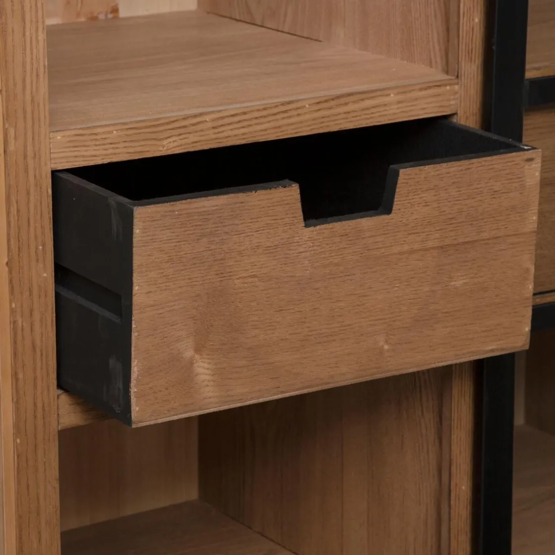 La praticité avant tout Idéal comme vaisselier, ce meuble s’ouvre sur cinq niveaux de rangement. Au milieu de ses compartiments ouverts, deux tiroirs pourront accueillir tous vos couverts.