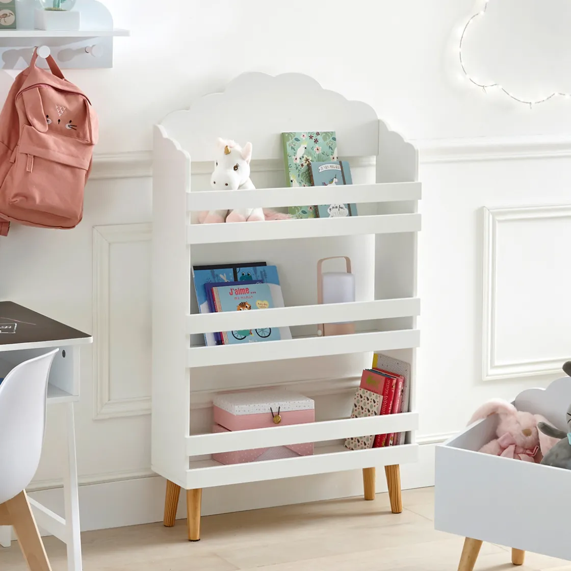 Conçue en panneaux de fibres solides, la bibliothèque « Nuage » a tout pour plaire. Son sommet a été dessiné selon le motif d’un nuage pour apporter un petit détail magique au rangement. Ses pieds scandinaves assurent sa stabilité tout en lui conférant une séduisante touche rétro.