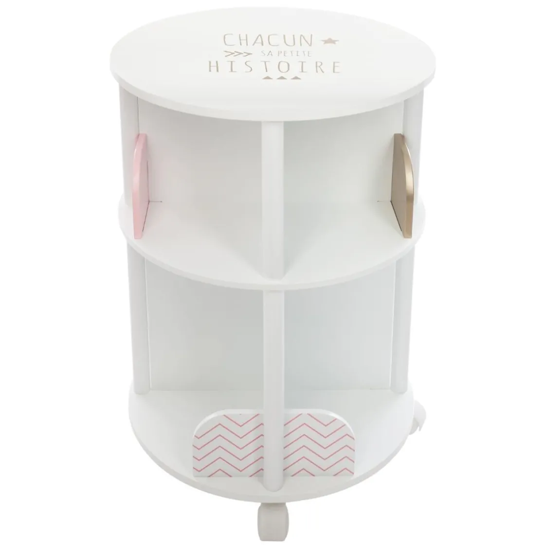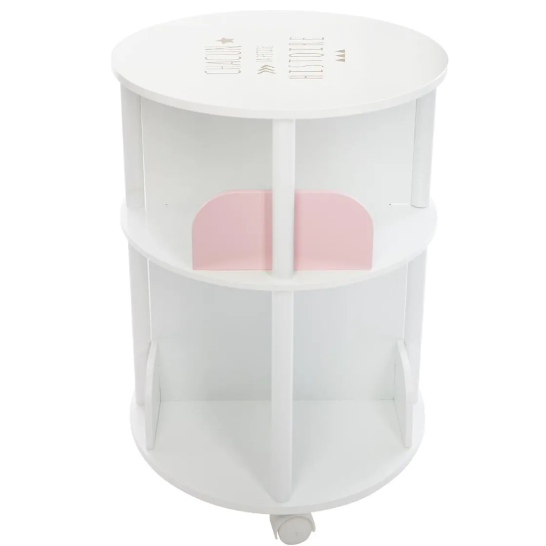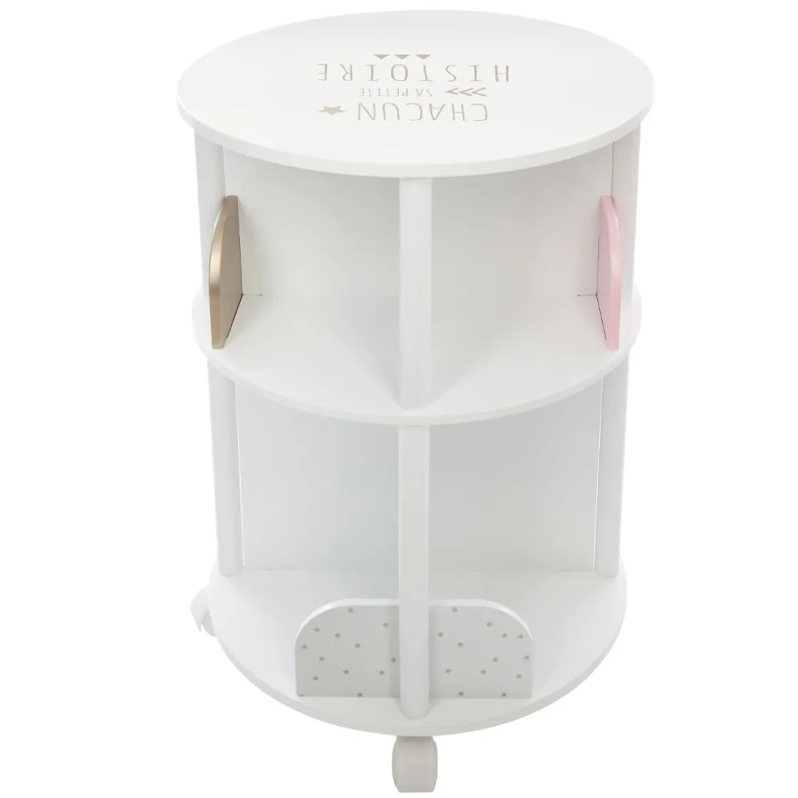 Cette bibliothèque est un petit meuble bien pratique pour créer un bel espace lecture dans la chambre de votre enfant. Fonctionnelle, sa forme circulaire s’agrémente de 8 petits compartiments pour accueillir les livres et autres cahiers de coloriage.