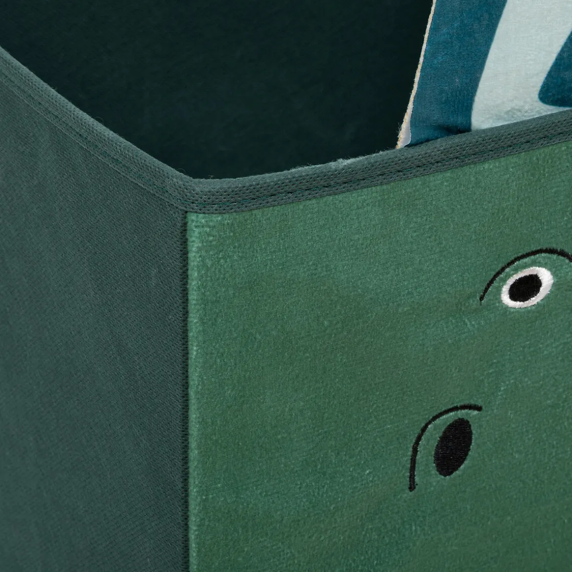 De forme carrée, la boîte de rangement enfant « Dinosaure » est revêtue de tissu coloré et l’une des faces est décorée d’une tête de dinosaure surmontée de crêtes. Pliable et adaptée à la plupart des meubles de rangement, elle permettra à votre enfant de trier jeux et jouets afin de garder une chambre ordonnée.