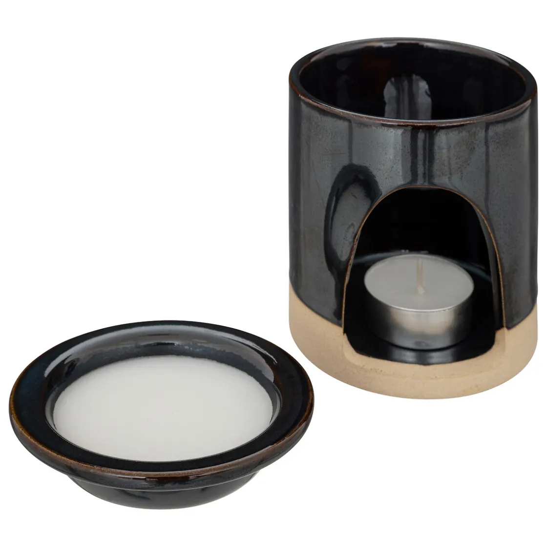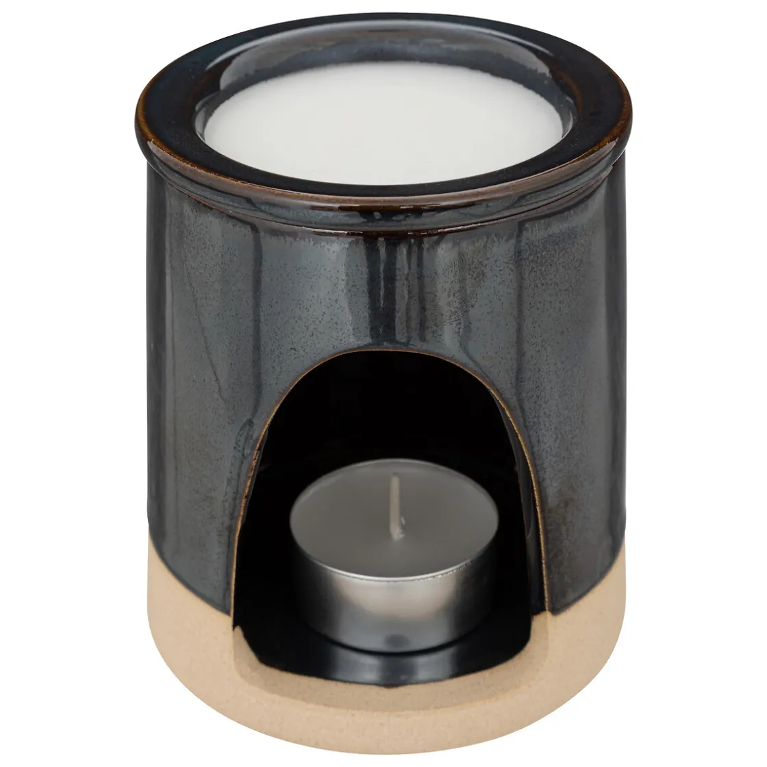 Ce brûle-parfum en céramique se distingue par ces couleurs profondes. Placez la bougie* chauffe-plat à l’intérieur afin que la chaleur de la flamme embaume toute votre pièce. Avec son petit format, cet objet déco se glissera facilement sur un meuble au milieu de vos statuettes et autres bibelots.