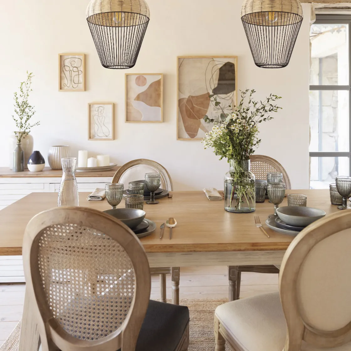 Ce buffet trouvera sa place dans une pièce de vie comme dans une cuisine et participera à un univers déco convivial! Placez un vase en verre garni de fleurs séchées sur le plateau, ajoutez quelques coupelles en porcelaine et profitez d’une certaine douceur de vivre.