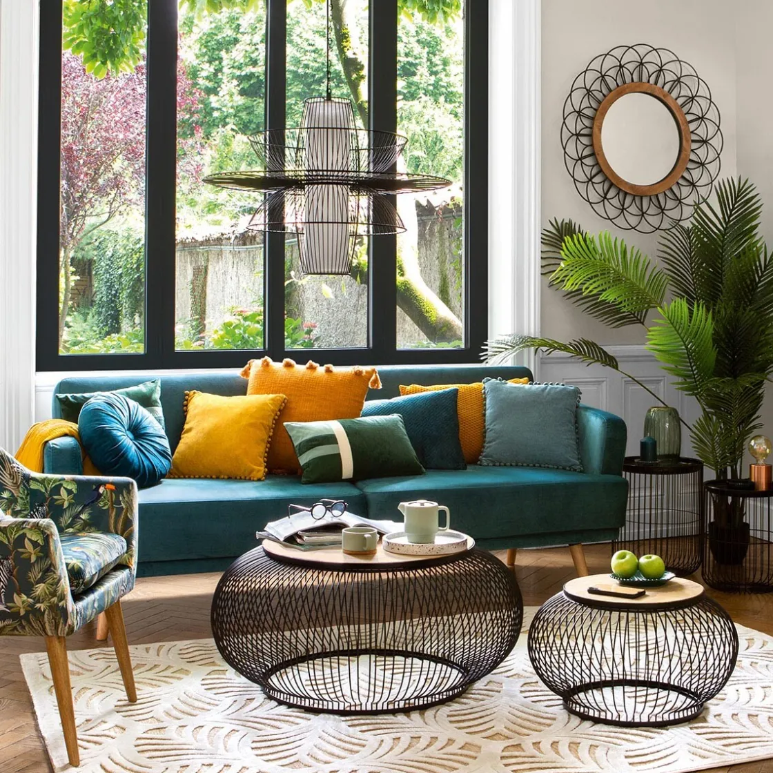 Pour renforcer l’originalité de votre pièce, associez le canapé « Jack » à des tables filaires en métal Atmosphera.