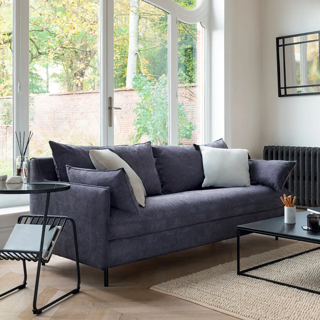 Imaginé et fabriqué en France, coussins décoratifs et pieds contrastés finalisent ce modèle d’une grande sobriété pile dans la tendance. Convertible en lit grâce à un sommier intégré facile à déplier, vous pourrez enfin recevoir famille et amis sur ce couchage supplémentaire.