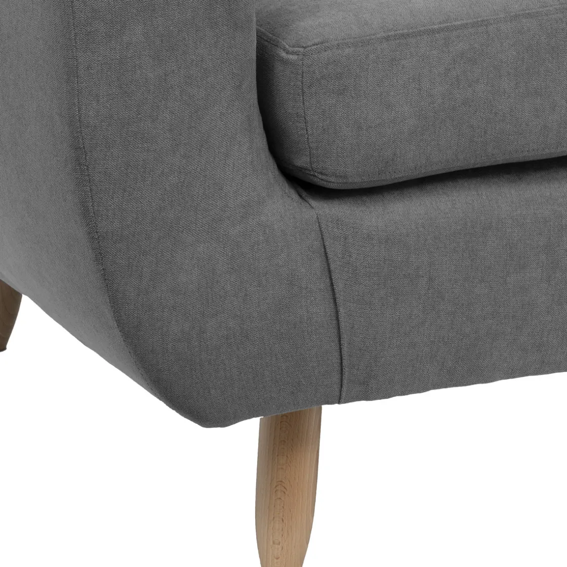 Avec ses dimensions généreuses, ce modèle trouvera facilement sa place dans un espace assez grand. Ses pieds en bois s’inscrivent dans la tendance scandinave. Son tissu de couleur neutre se mariera joliment avec un décor sobre et contemporain. Pour l’entretien, un simple brossage régulier suffit.