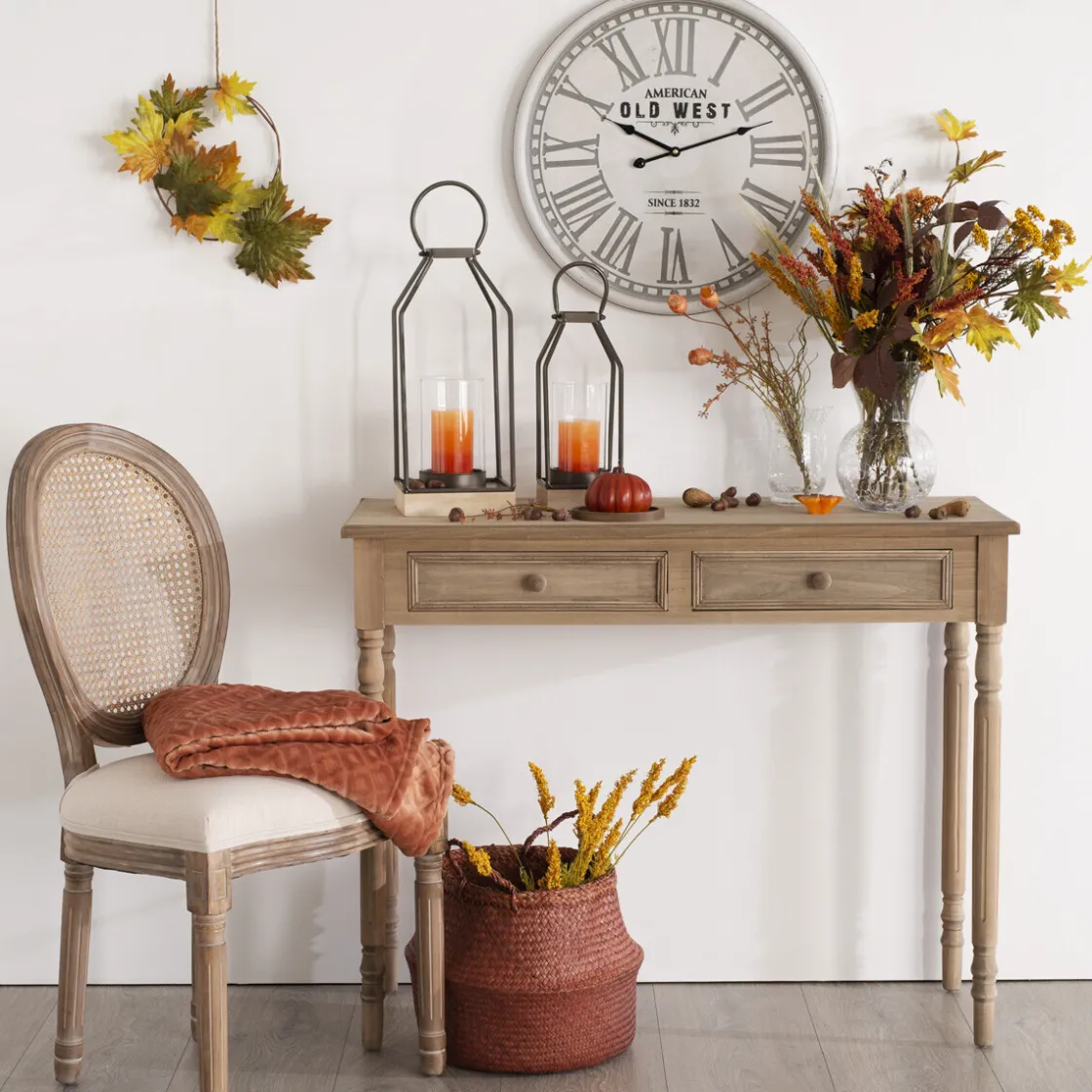 Quelques paniers en osier, un bouquet de fleurs séchées et des lanternes sublimeront votre chaise.