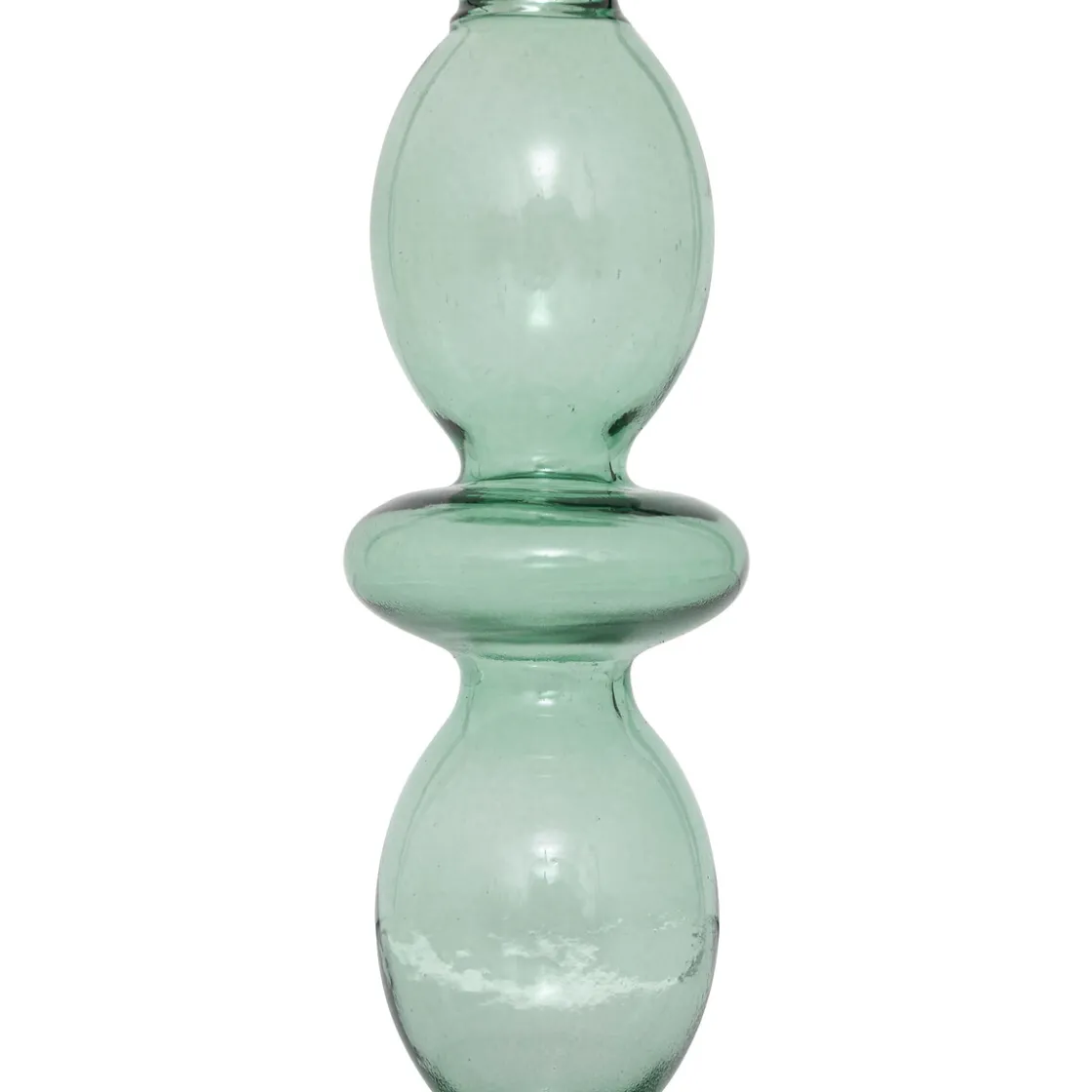 Très glamour, ce chandelier est en verre transparent teinté avec un pied bien travaillé. Sa hauteur moyenne est conçue pour accueillir des bougies bâtons à la cire traditionnelle ou LED. On l’imagine parfaitement sur une console dans une entrée ou sur un buffet dans un salon.