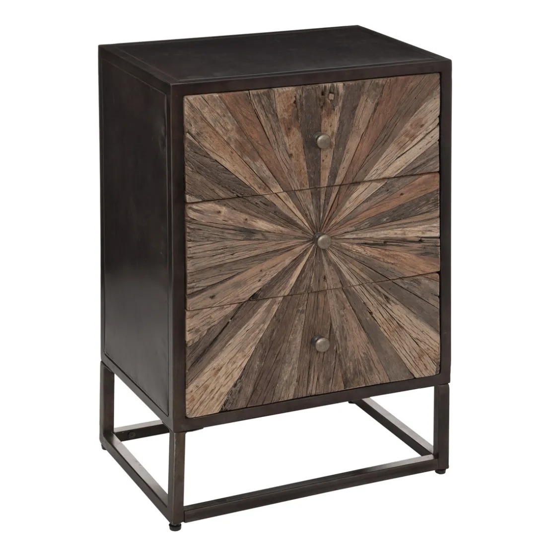 Avec sa structure métallique et ses tiroirs en bois recyclé, le chiffonnier « Origins » vous séduira par son aspect exotique. Pratique avec ses trois tiroirs, il s’intègrera à merveille dans un intérieur au style ethnique chic.