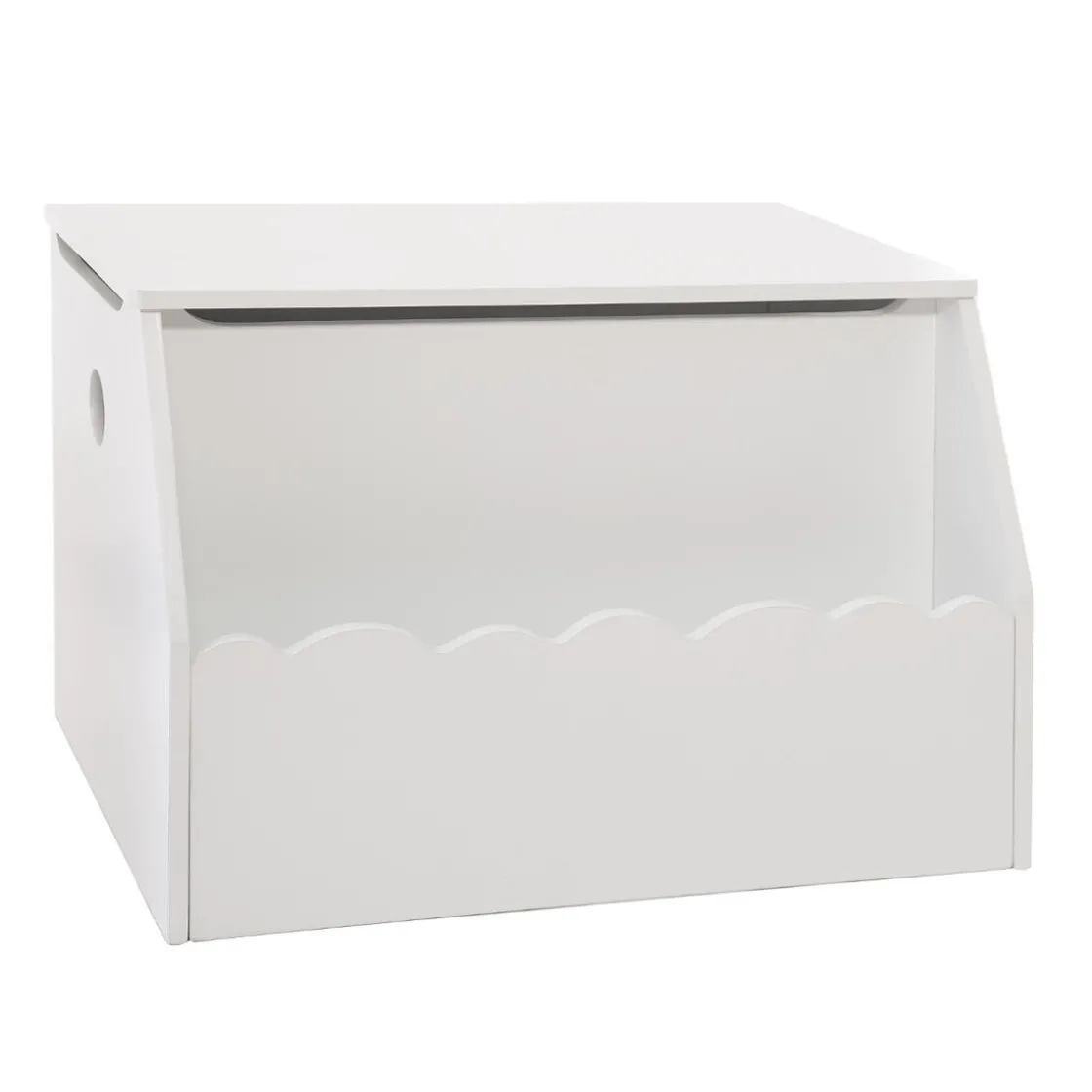 Les dentelures de ce coffre à jouets rappellent la forme d’un nuage. Pourquoi ne pas essayer de trouver d’autres idées déco sur le même thème ?