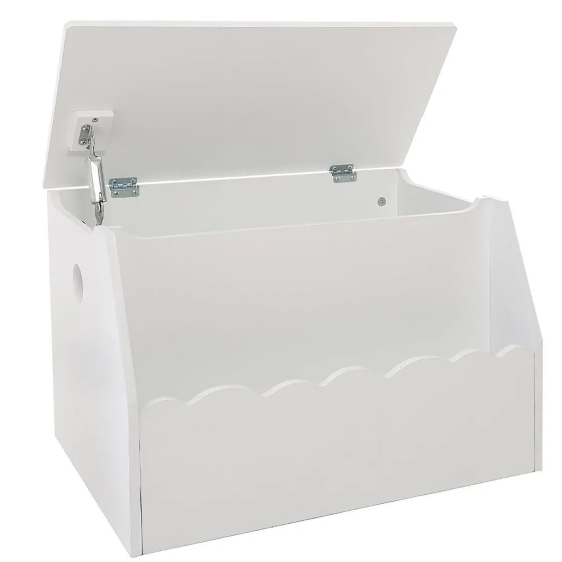 Le coffre offre un grand espace suffisant pour tous les jouets du quotidien. On aime tout particulièrement les dentelures de l’espace bibliothèque et les espaces sous le panneau supérieur du coffre qui évitent que votre enfant ne se pince les doigts.