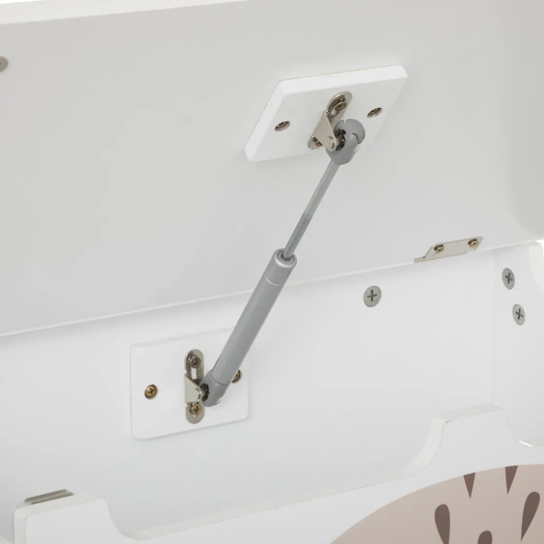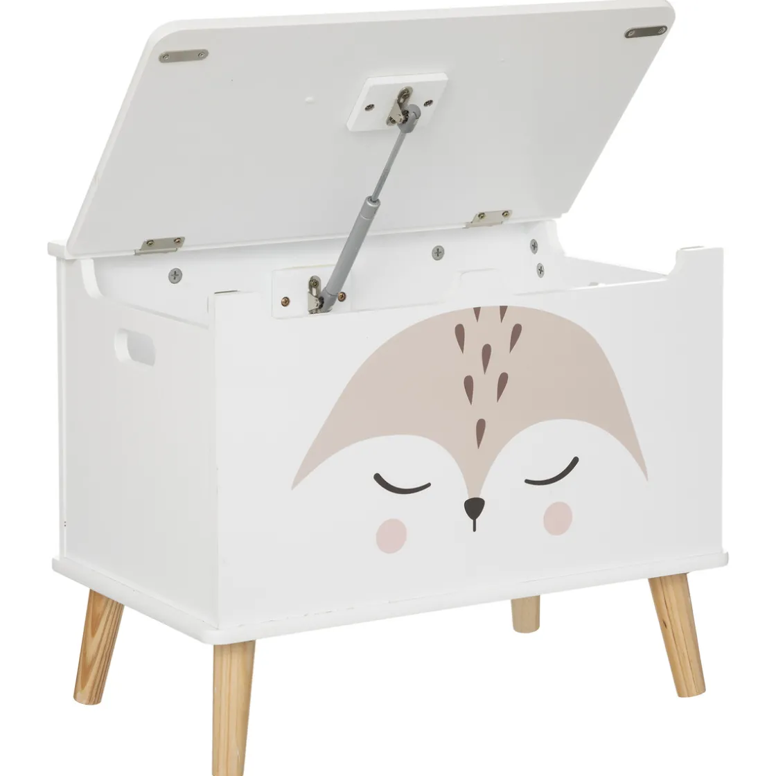 Très facile à ouvrir grâce à de grandes encoches, les petits doigts seront protégés! Peint d’une jolie tête de renard dont les oreilles dépassent en relief sur le dessus, c’est un meuble chaleureux et amusant.