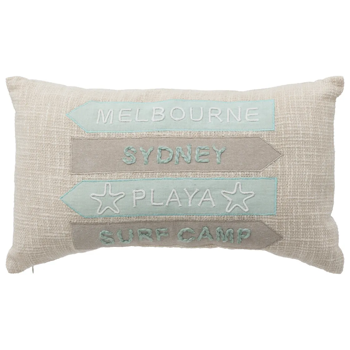 Ce coussin rectangulaire est bien rembourré pour accompagner votre tout-petit pendant ses instants de repos. Invitant à l’évasion, il est orné d’écritures en relief qui évoquent la vie australienne. La housse est amovible pour vous simplifier le nettoyage.