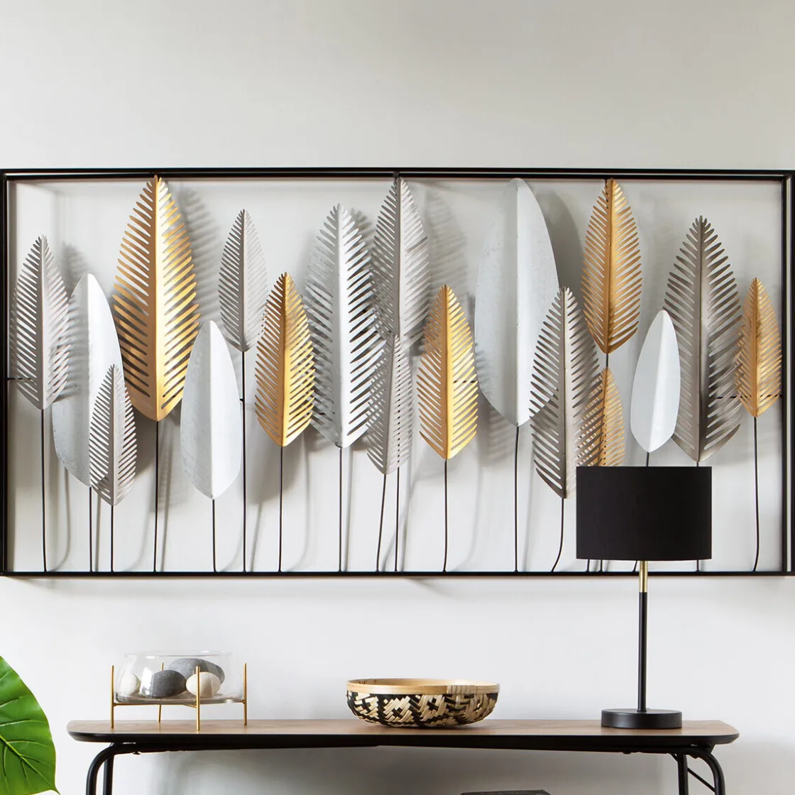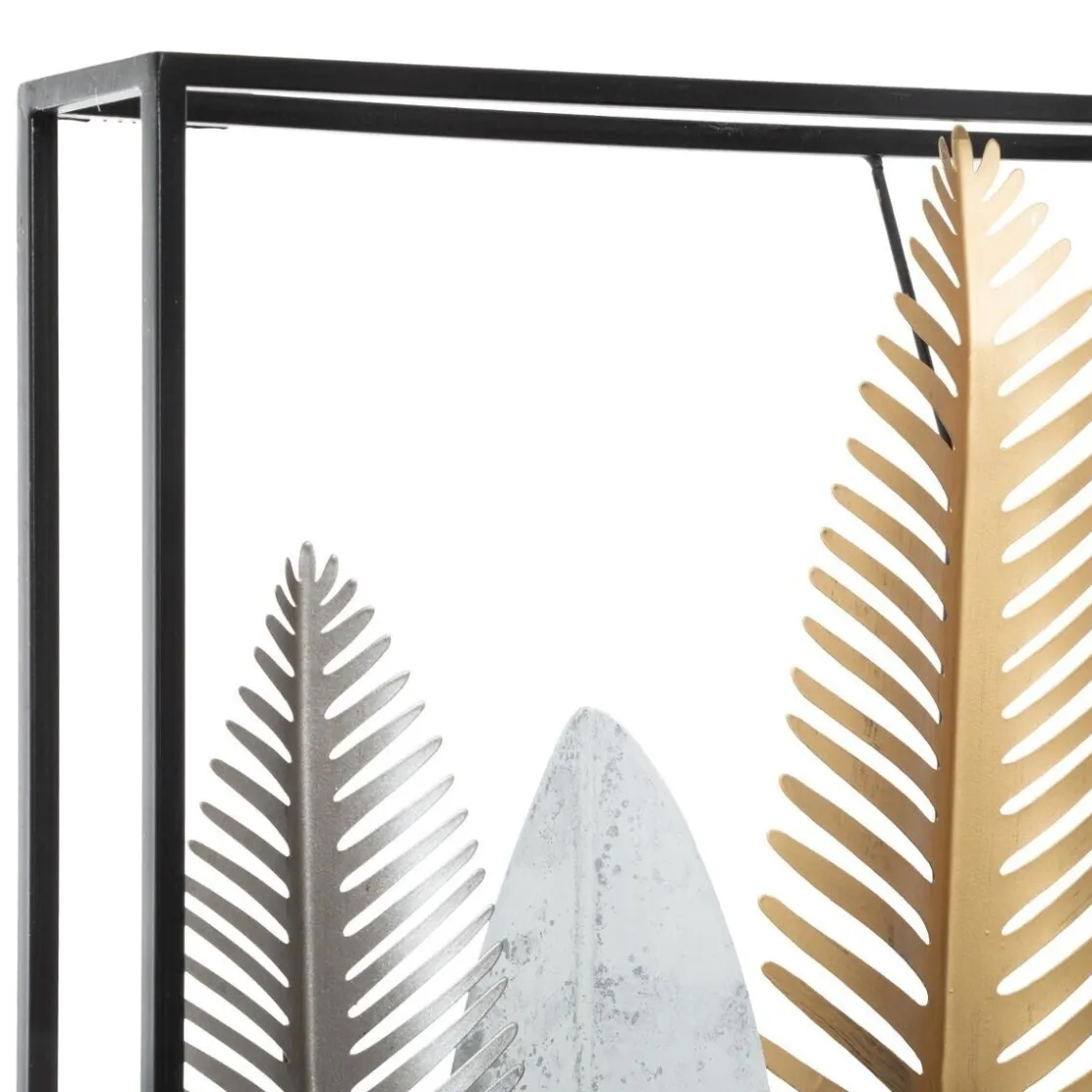 Le grand volume de la déco murale « Aram » est l’un de ses nombreux atouts. Composée de feuilles sculptées en fer, cette décoration contemporaine est entourée d’un cadre aux lignes affinées. Le détail raffiné : la variété de feuillages avec des éléments pleins, découpés, petits et grands.