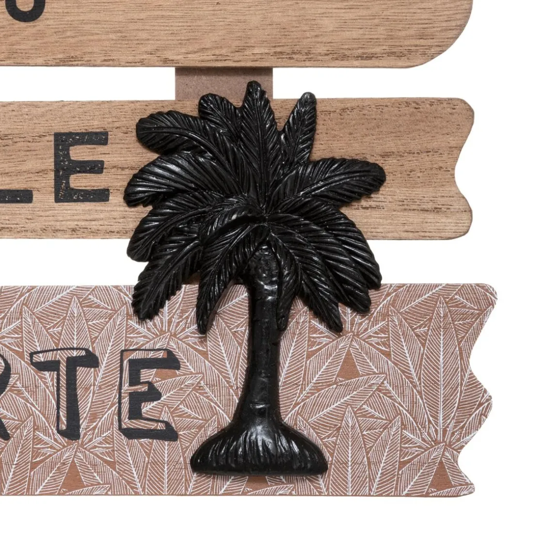 Cette déco murale « cuba » se compose de 5 planches en fibres de bois aux contours irréguliers qui confèrent à l’ensemble un style brut. Décoré d’une statuette en résine, cette déco est peinte d’un message en forme de mantra et se suspend grâce à une corde en chanvre. Quelques clous en métal viennent parfaire cet accessoire chaleureux!