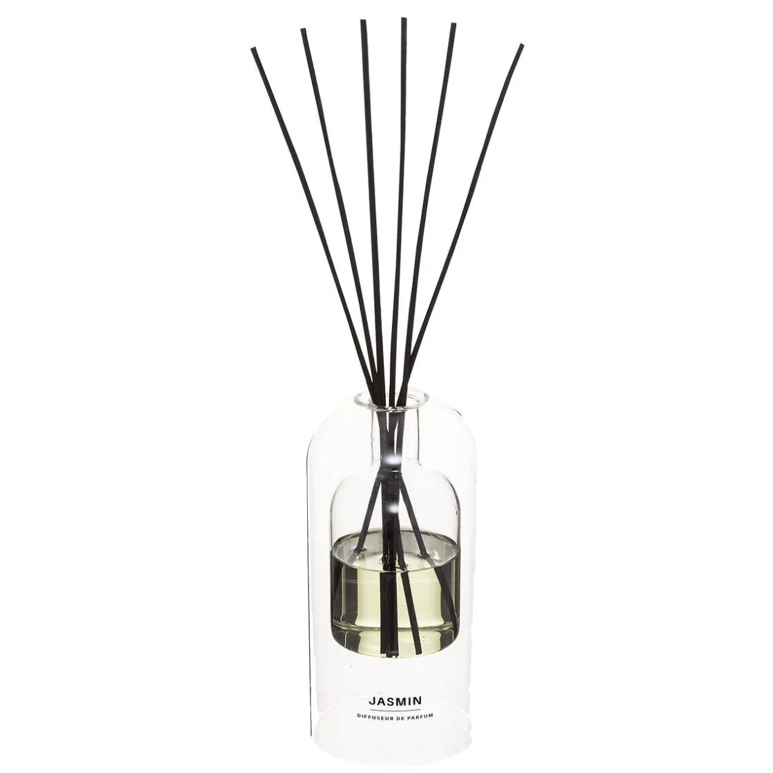 On craque pour les lignes épurées et le jeu de transparence de ce diffuseur de parfum. Le flacon en verre d’une contenance de 150 ml est assorti de 6 bâtonnets pour une durée de diffusion de 12 semaines. Son parfum Jasmin, féminin et raffiné, offre de délicates notes de rose associées à la puissance du jasmin et du musc blanc